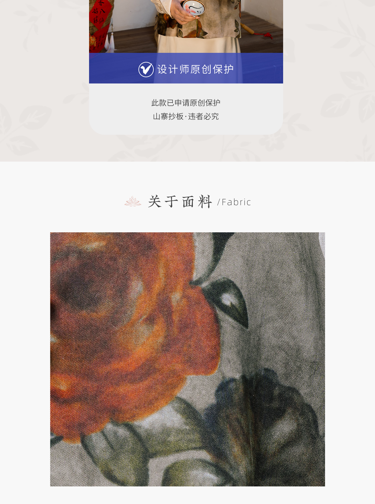 2、细节展示:材质、工艺、做工等;