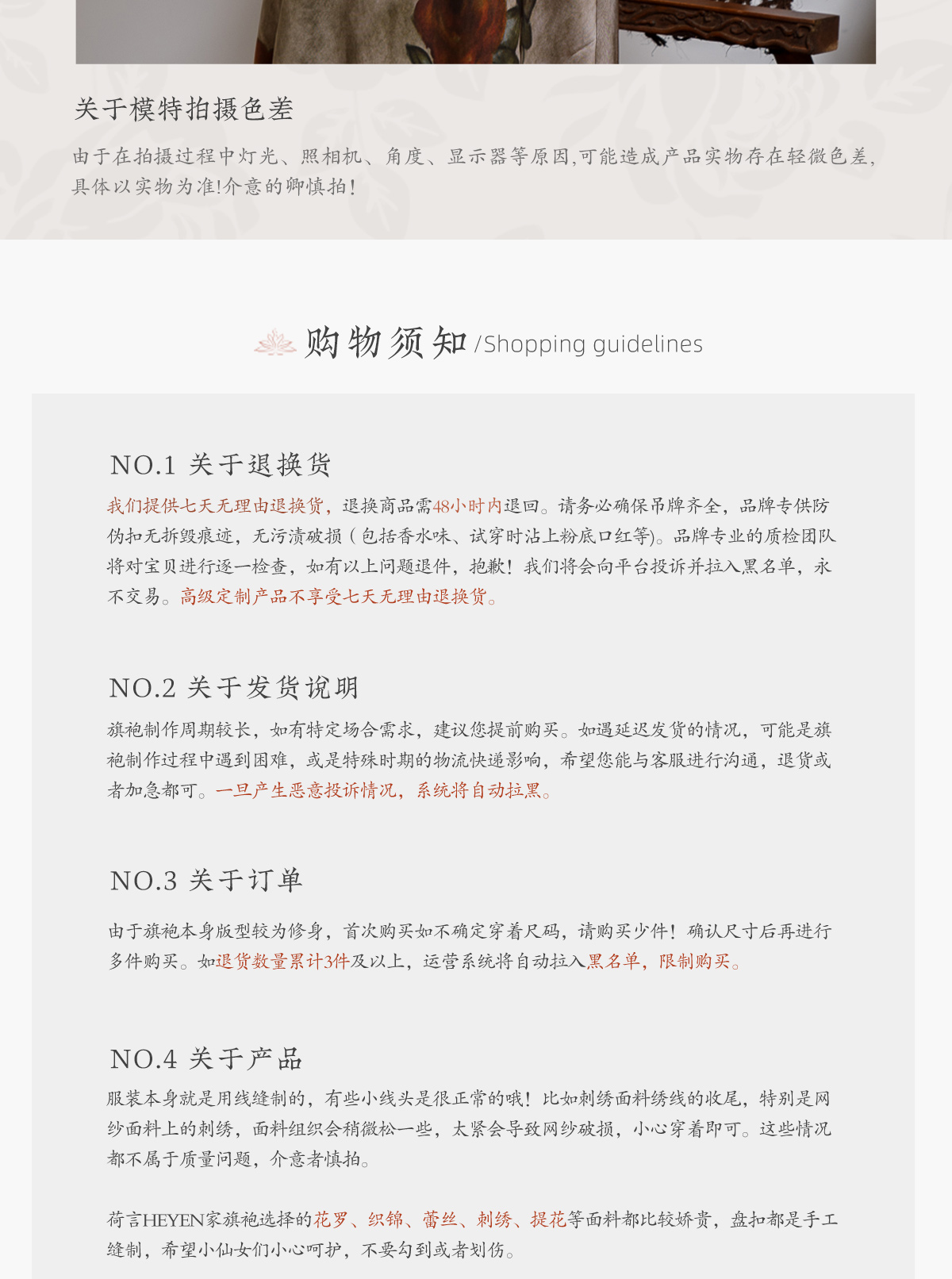 3、规格、尺码等;