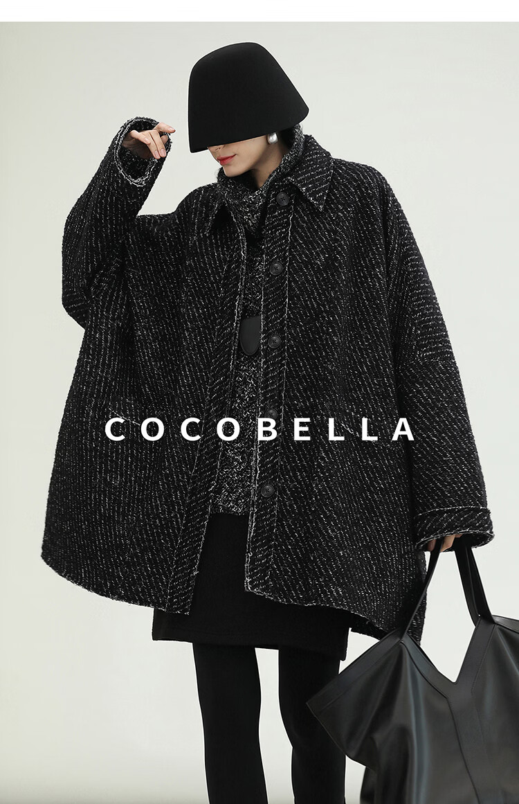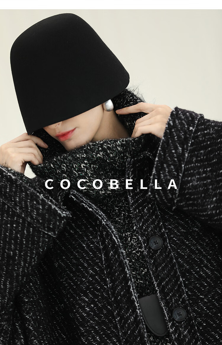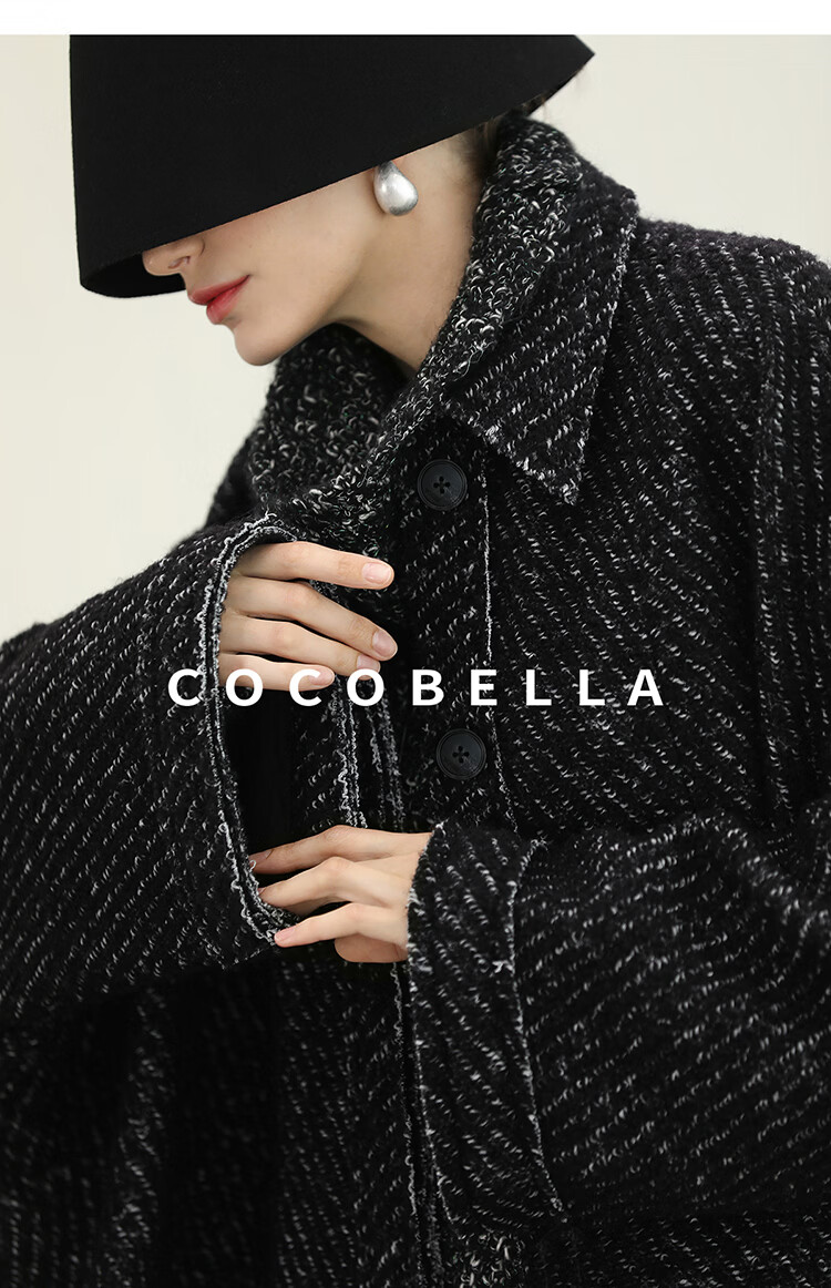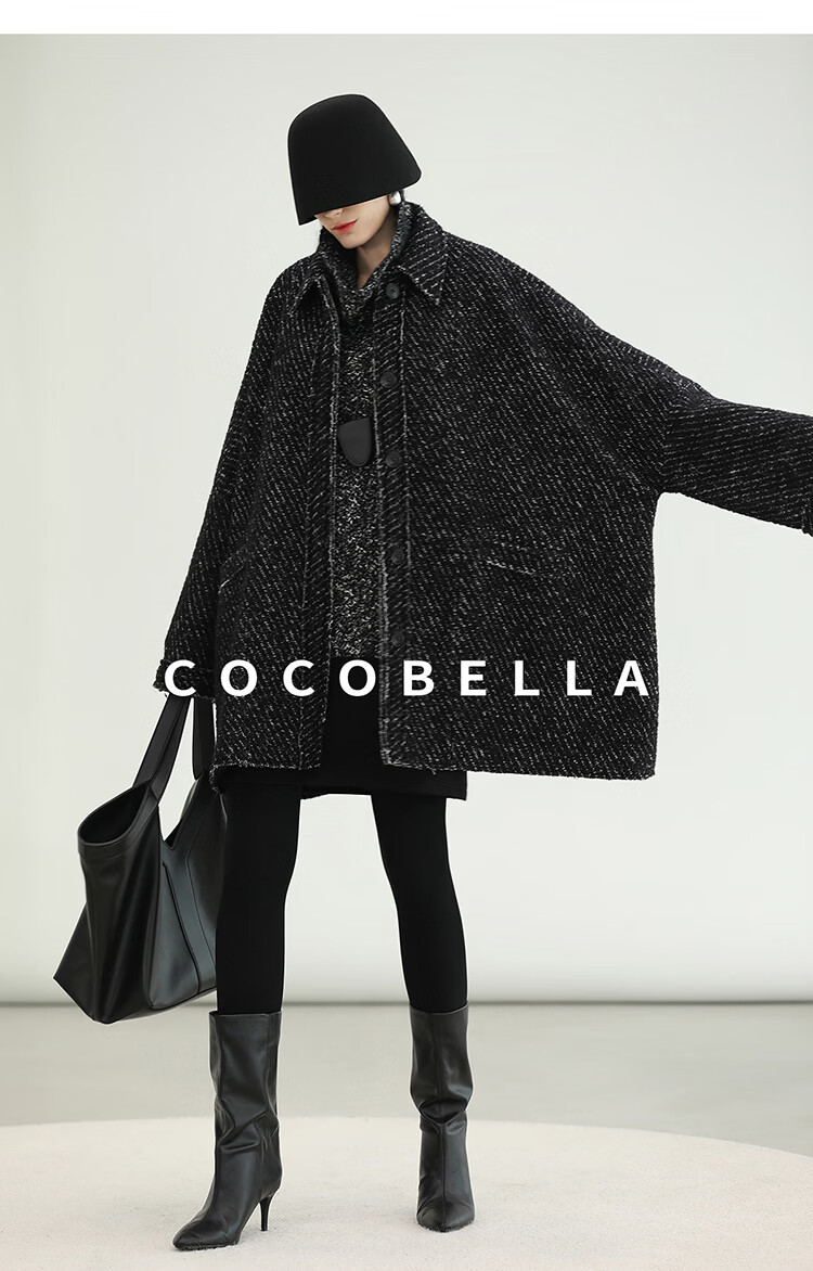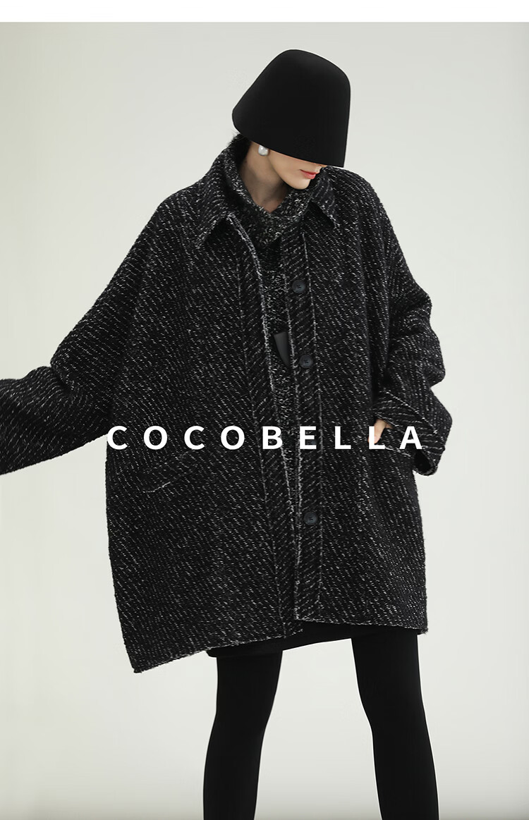 COCOBELLA轻奢羊毛大衣女秋冬质感通勤大廓形毛呢外套WL3210