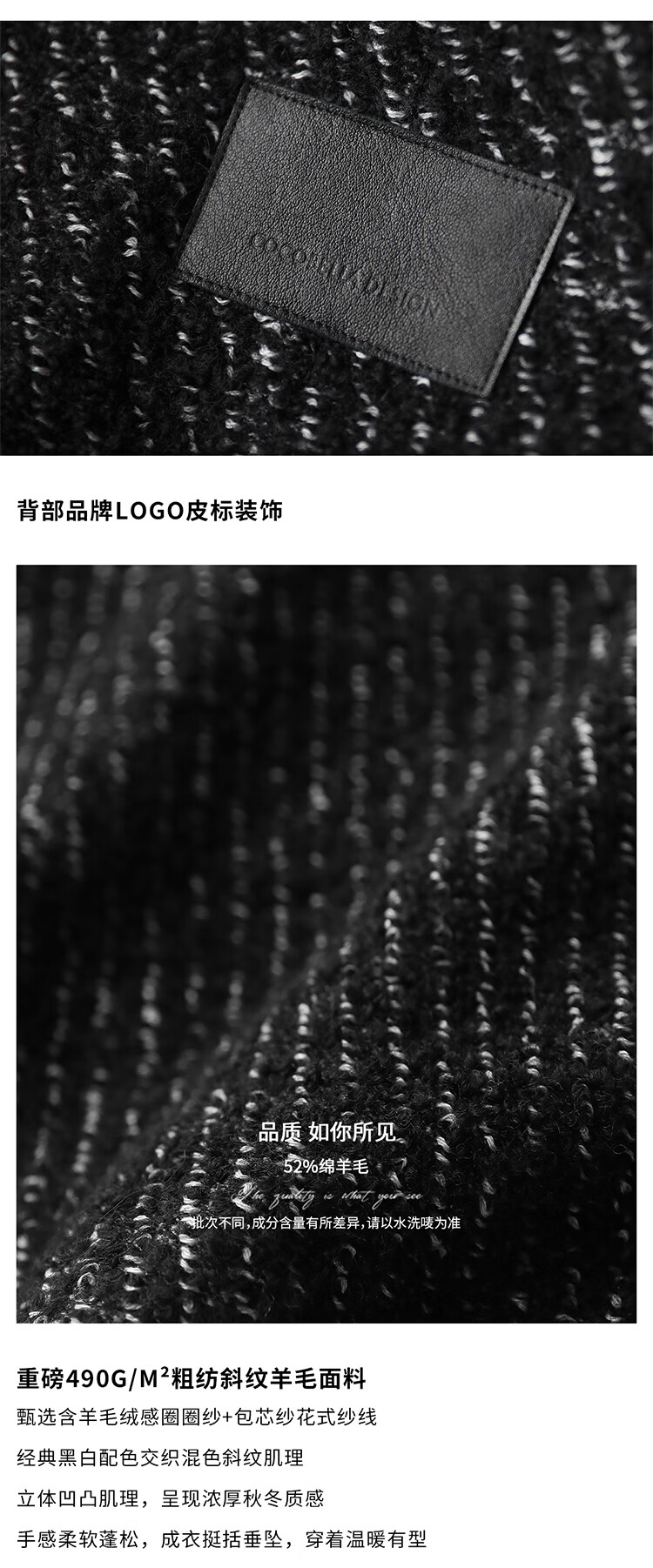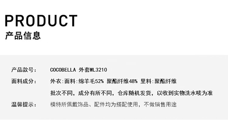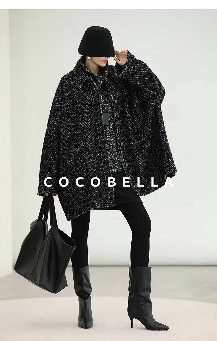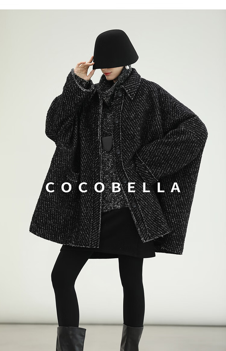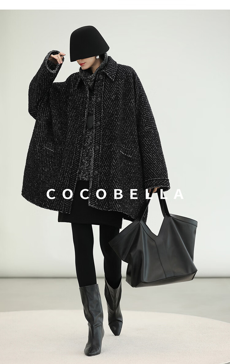 COCOBELLA轻奢羊毛大衣女秋冬质感通勤大廓形毛呢外套WL3210