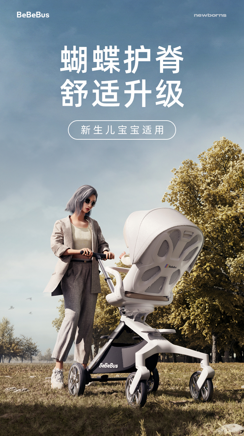 BeBeBus蝴蝶车 高景观遛娃神器轻便可折叠 婴儿推车