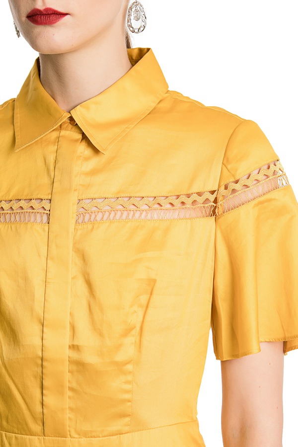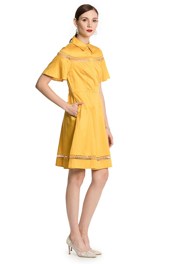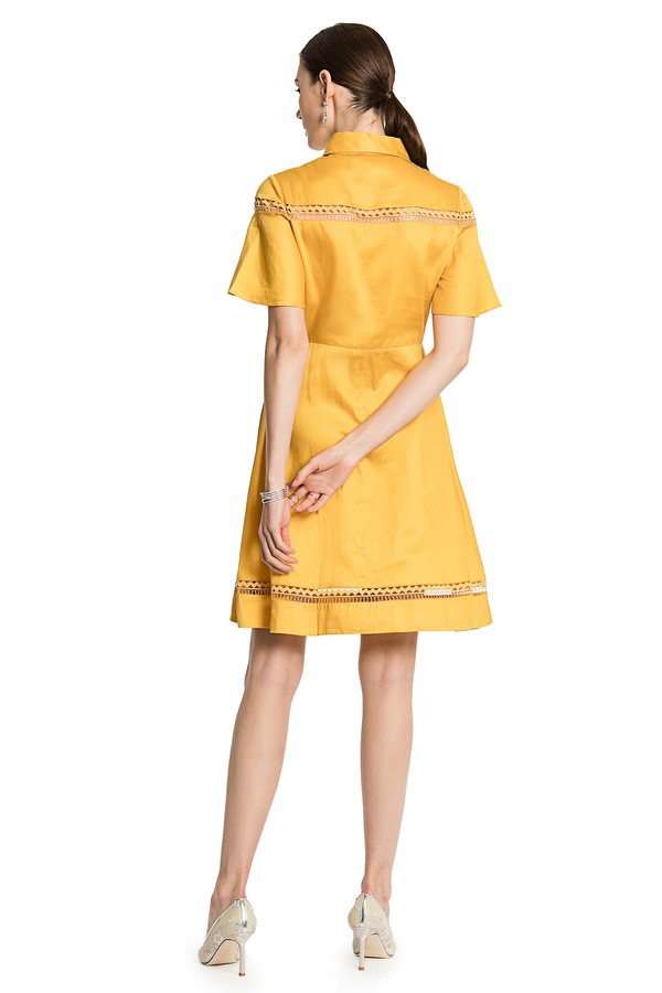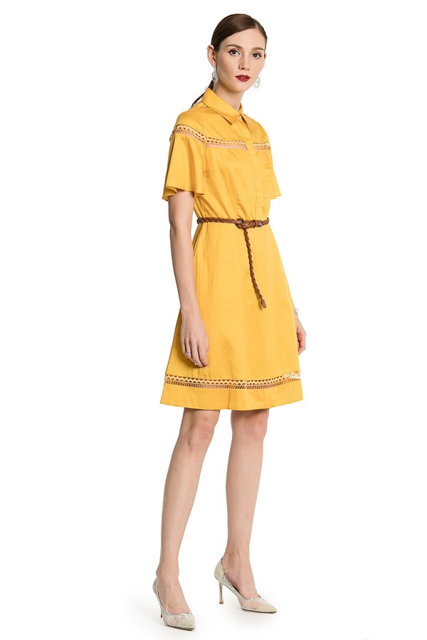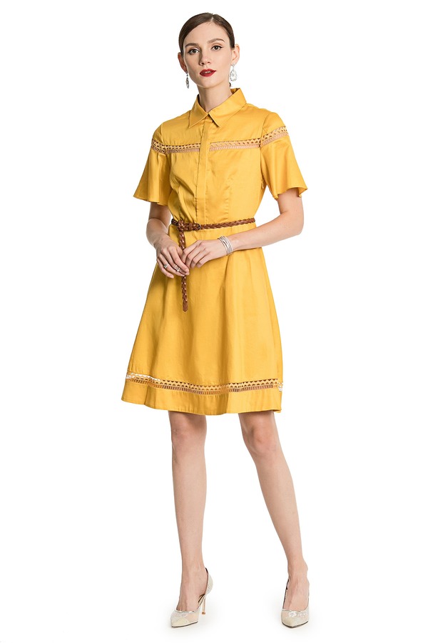 GLoria歌莉娅 黄色亮泽镂空连衣裙 876