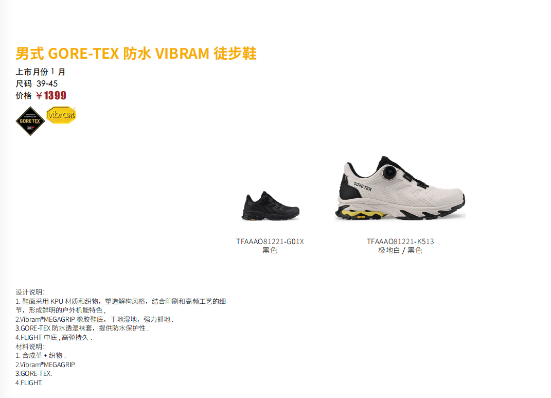 探路者男式GORE-TEX防水VIBRAM徒步鞋TFAAAO81221