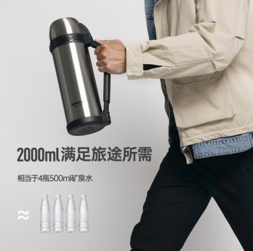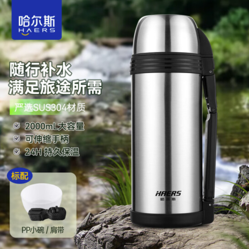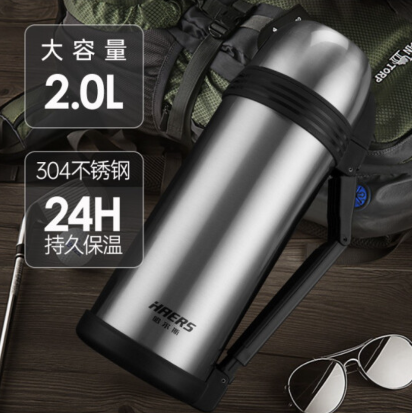 哈尔斯(HAERS)旅行保温水壶户外大容量保温壶304不锈钢保温瓶便携保温壶 本色 淘气