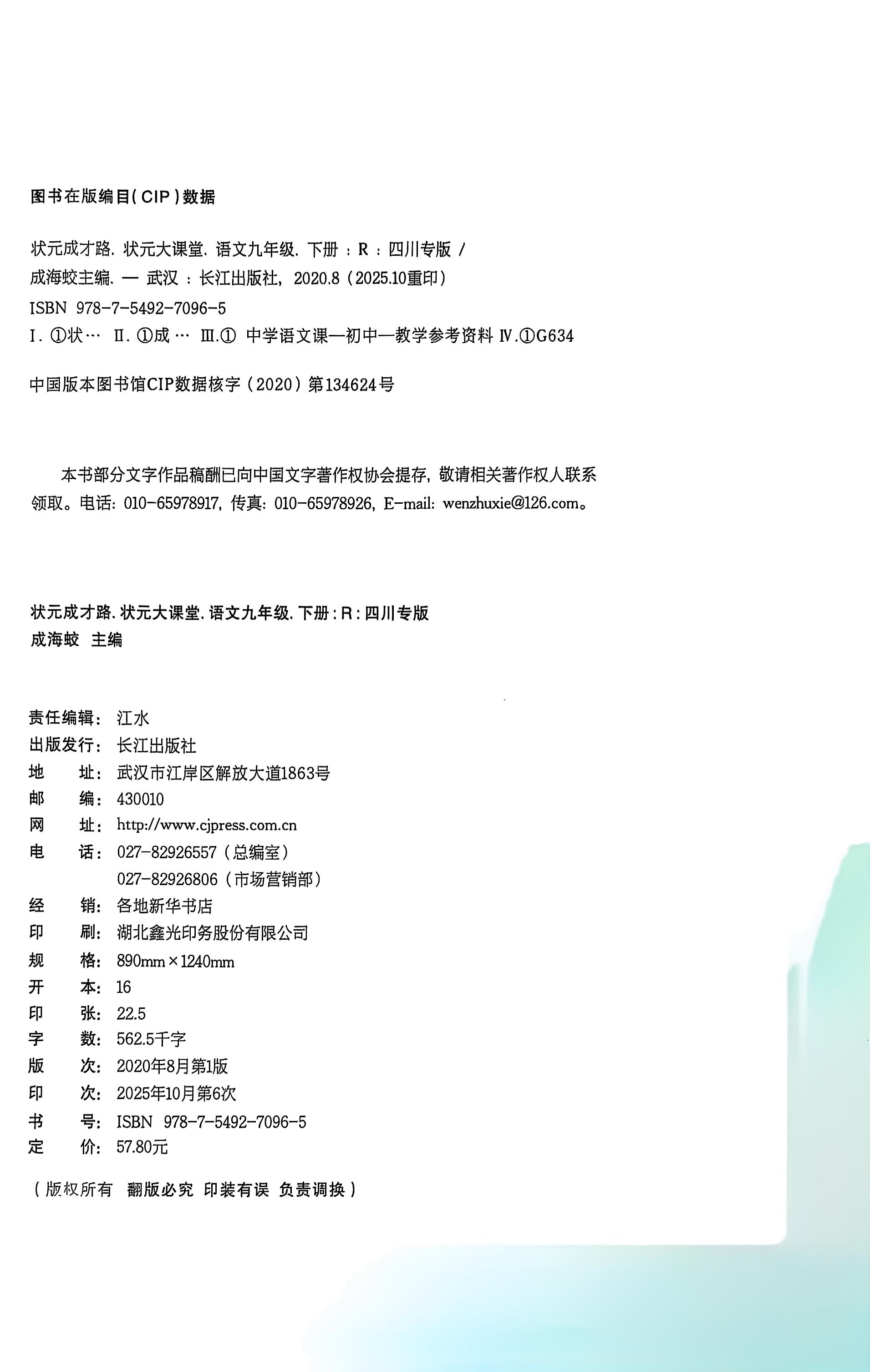 2026春状元大课堂九年级语文下四川专版