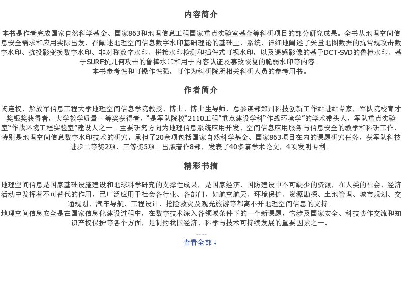《地理空间信息数字水印技术》(闵连权,杨辉,侯翔,张卫柱)