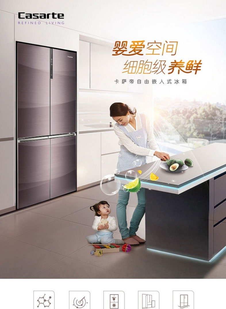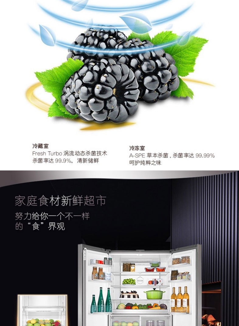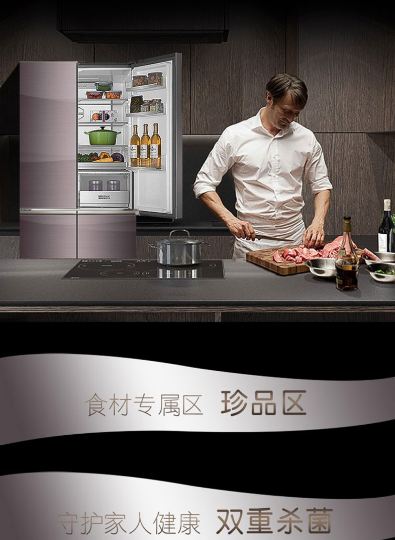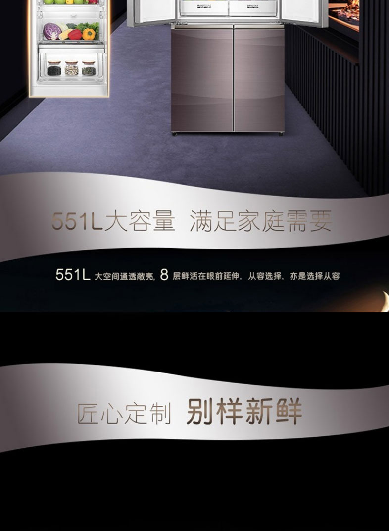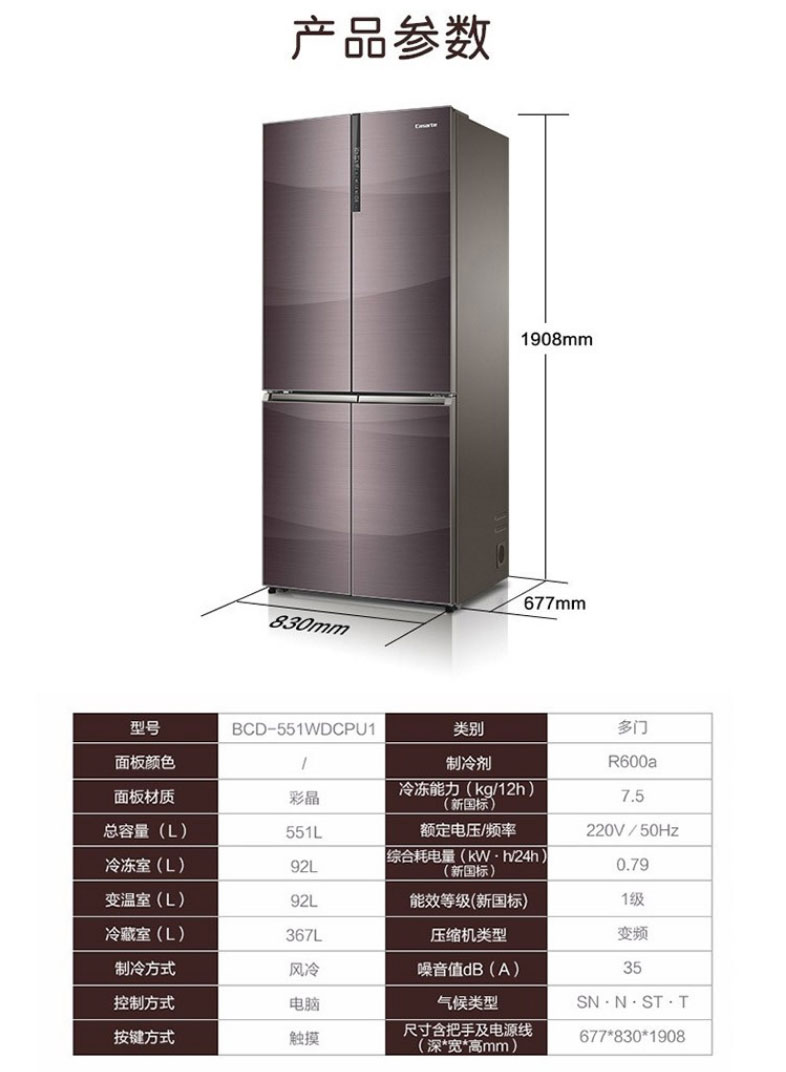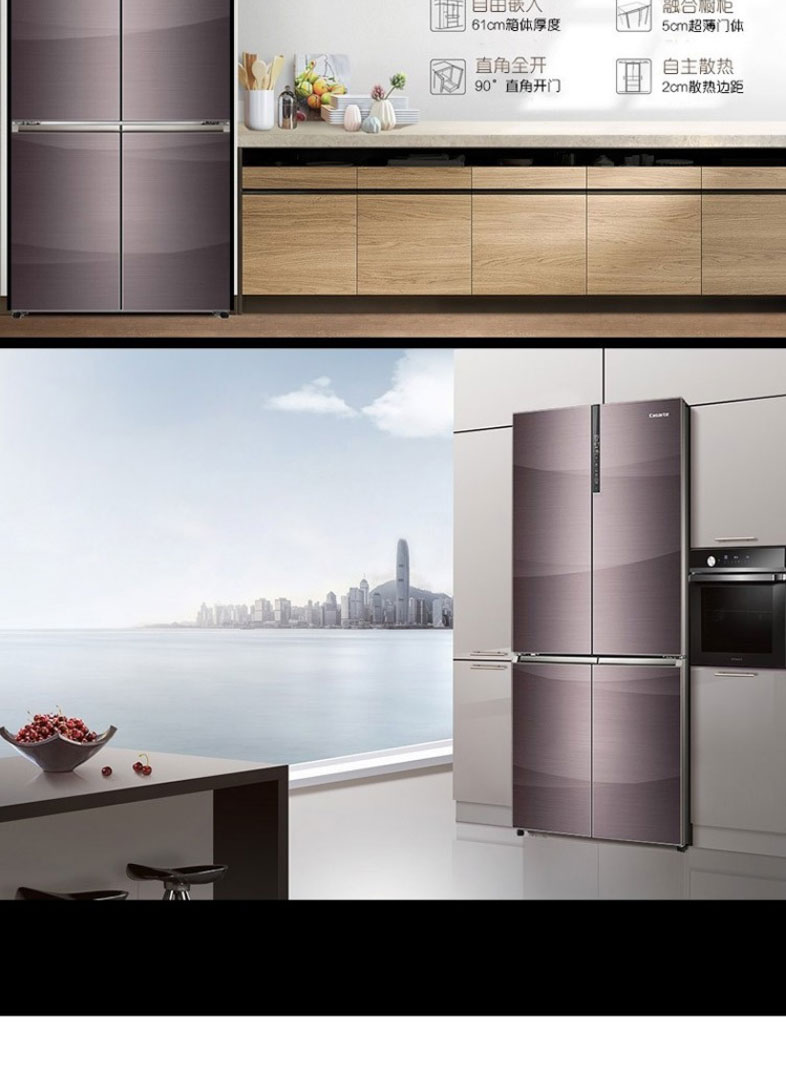 卡萨帝冰箱家用551升嵌入式4门十字对开门大容量风冷无霜不串味变频节能 极光紫BCD-551WDCPU1
