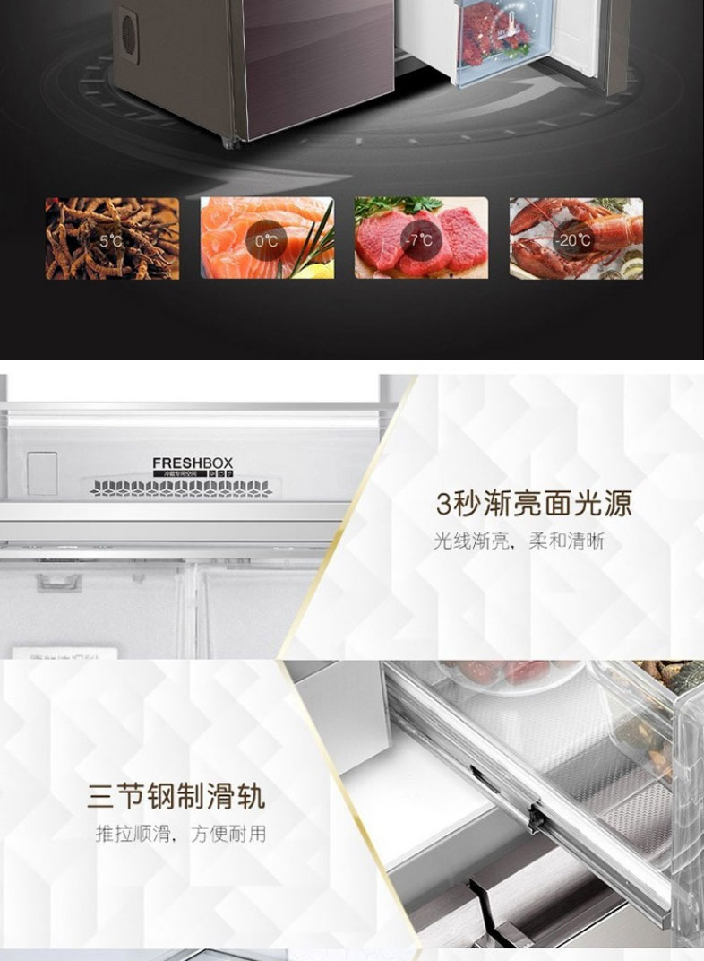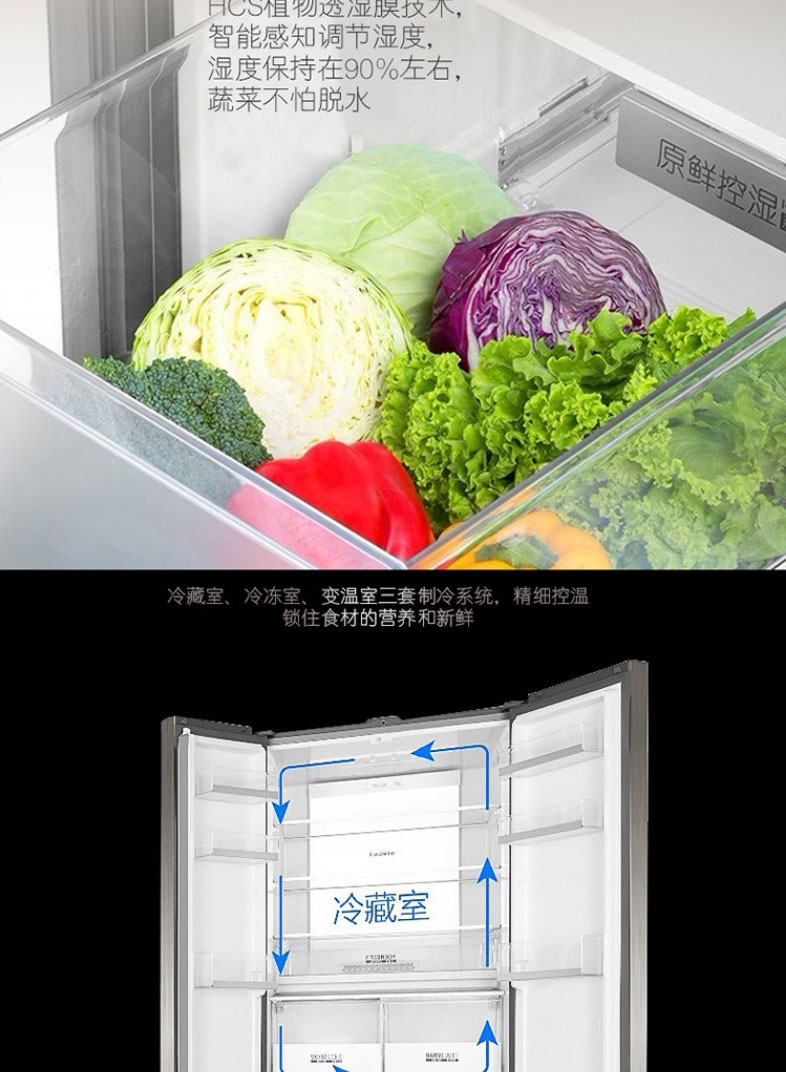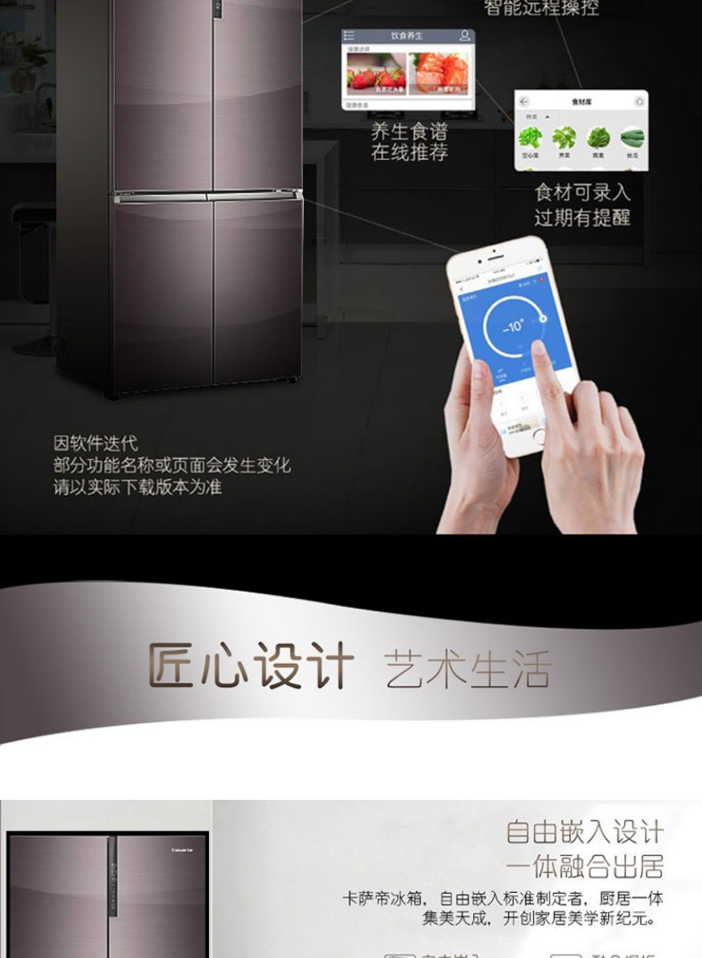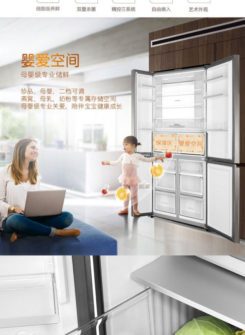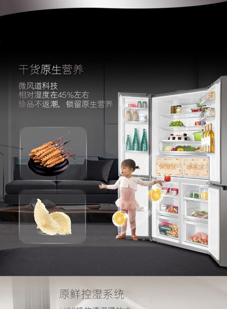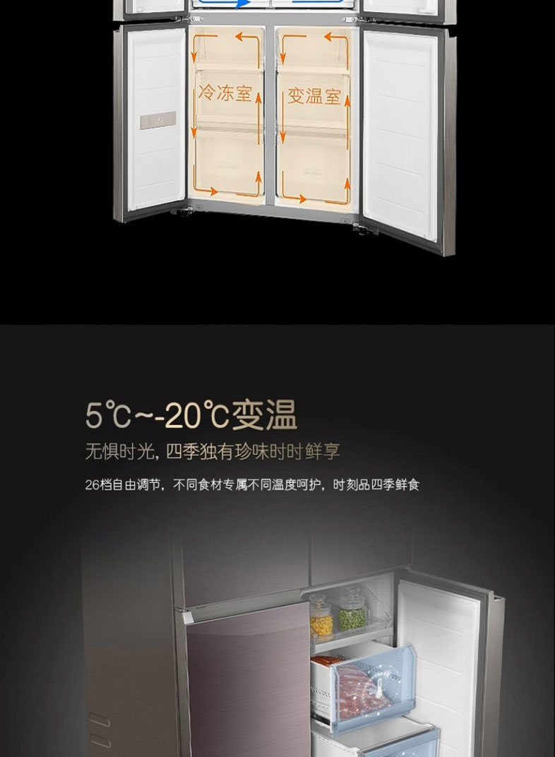 卡萨帝冰箱家用551升嵌入式4门十字对开门大容量风冷无霜不串味变频节能 极光紫BCD-551WDCPU1