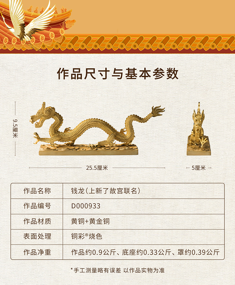铜师傅《钱龙》上新了故宫联名 龙年吉祥物摆件办公室乔迁礼品