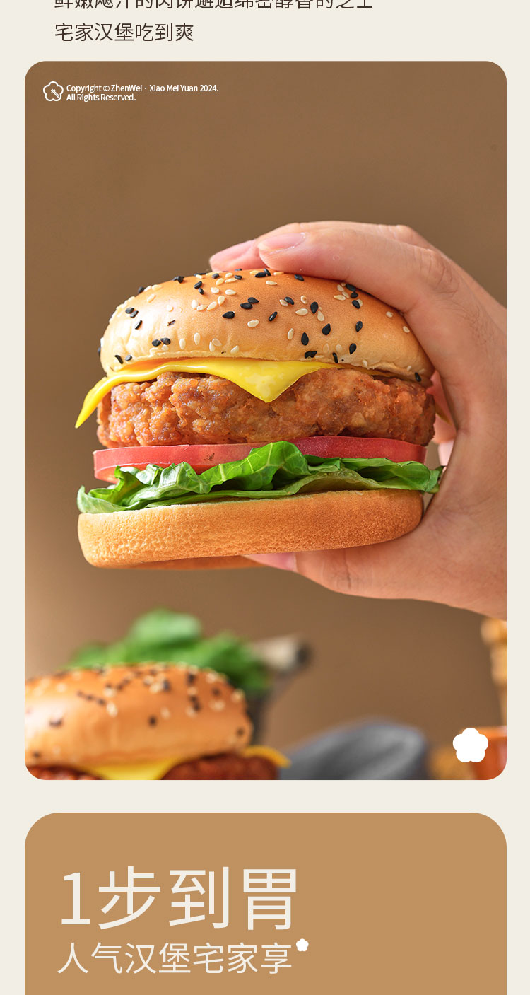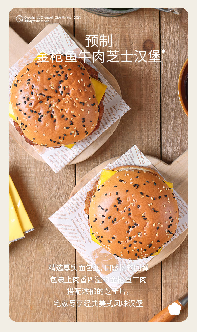 【69选3件】珍味小梅园金枪鱼牛肉芝士汉堡*3袋