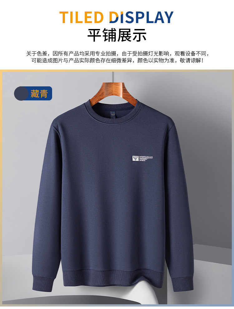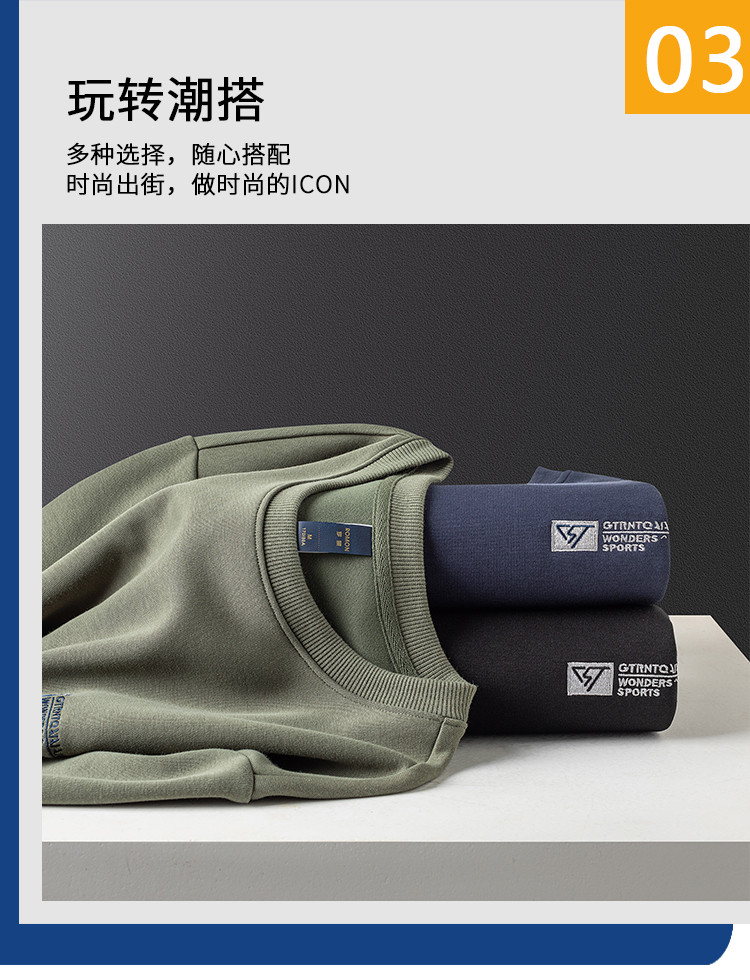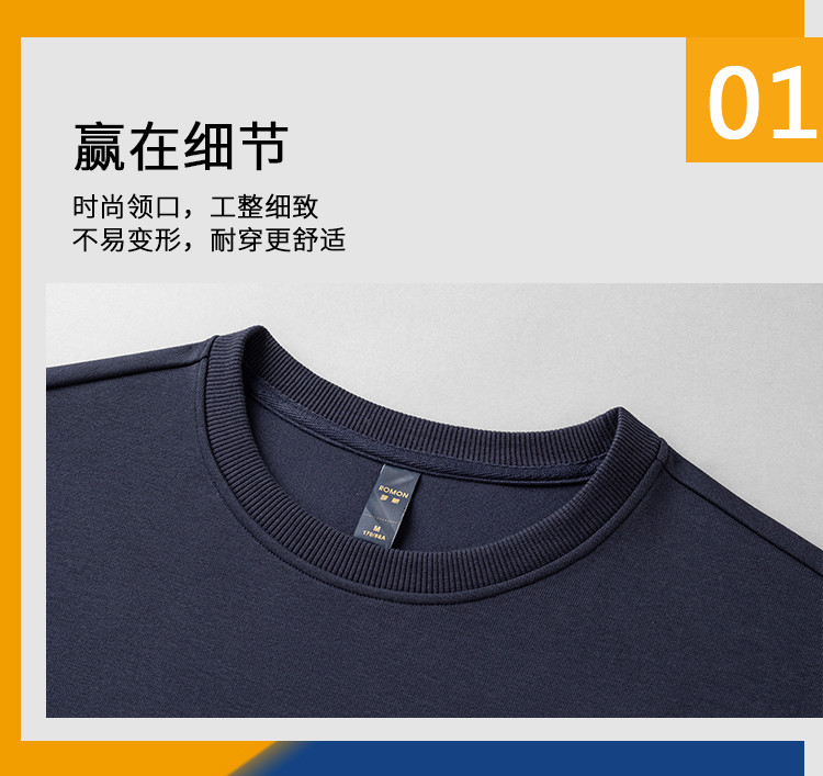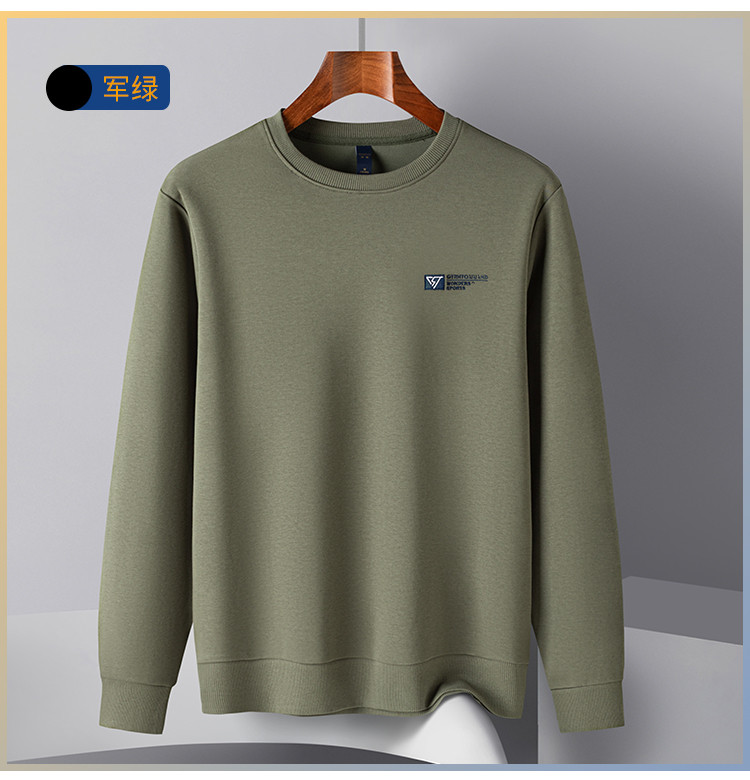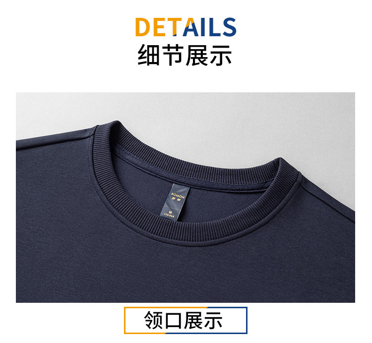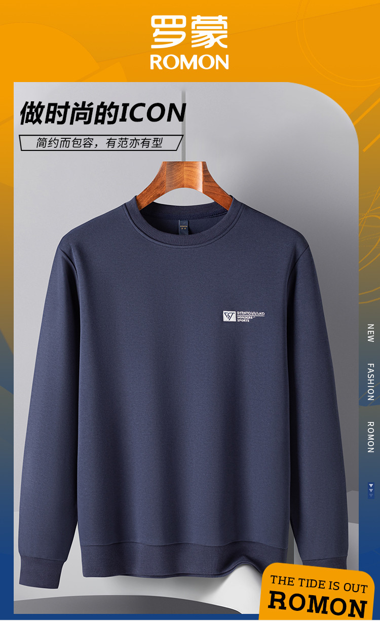 【桑蚕丝混纺】罗蒙春秋男装卫衣胸花绣花卫衣男士休闲百搭男青年卫衣圆领长袖T恤上衣男
