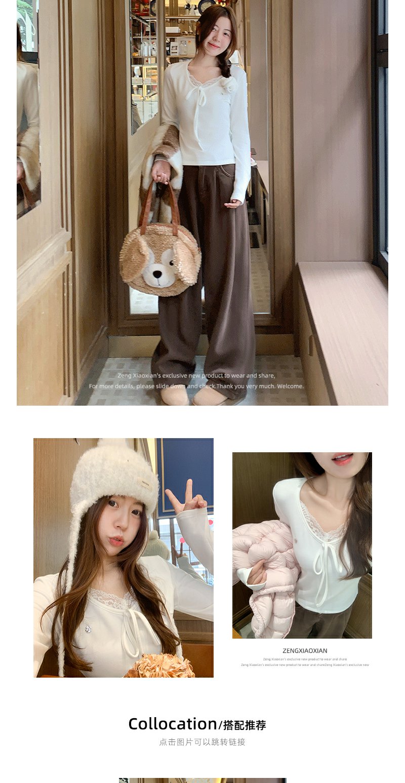 <曾小咸推荐>现货秒杀 !微信超特价!v领蕾丝边打底衫 日常119.99 立减50 秒杀69.99!!