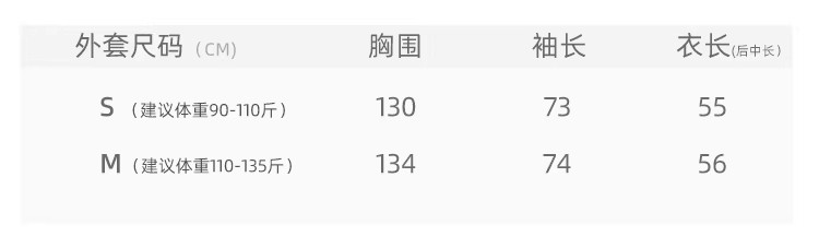 羽绒服尺码