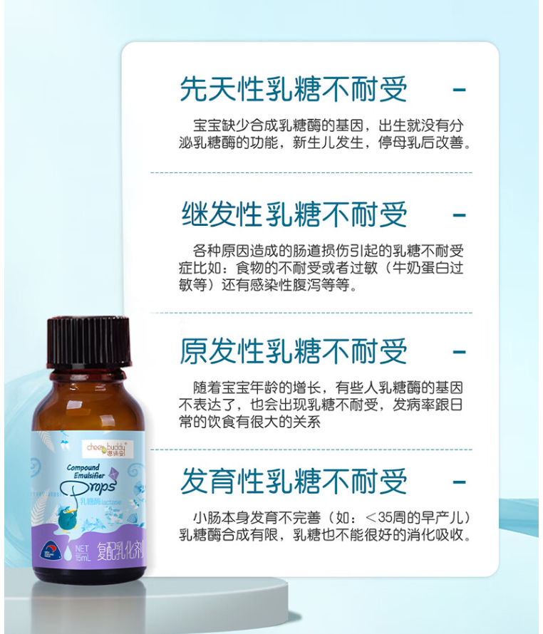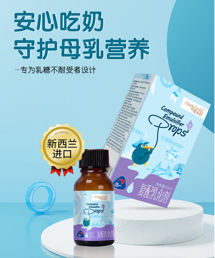 趣谛安(cheer buddy)乳糖酶复配乳化剂 酸性乳糖酶 乳糖酶滴液 乳糖不耐受人群 乳糖酶 奶伴侣15mL 新西兰进口