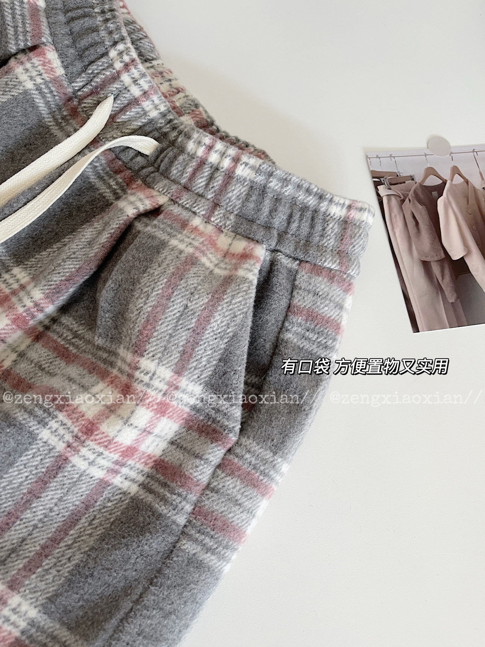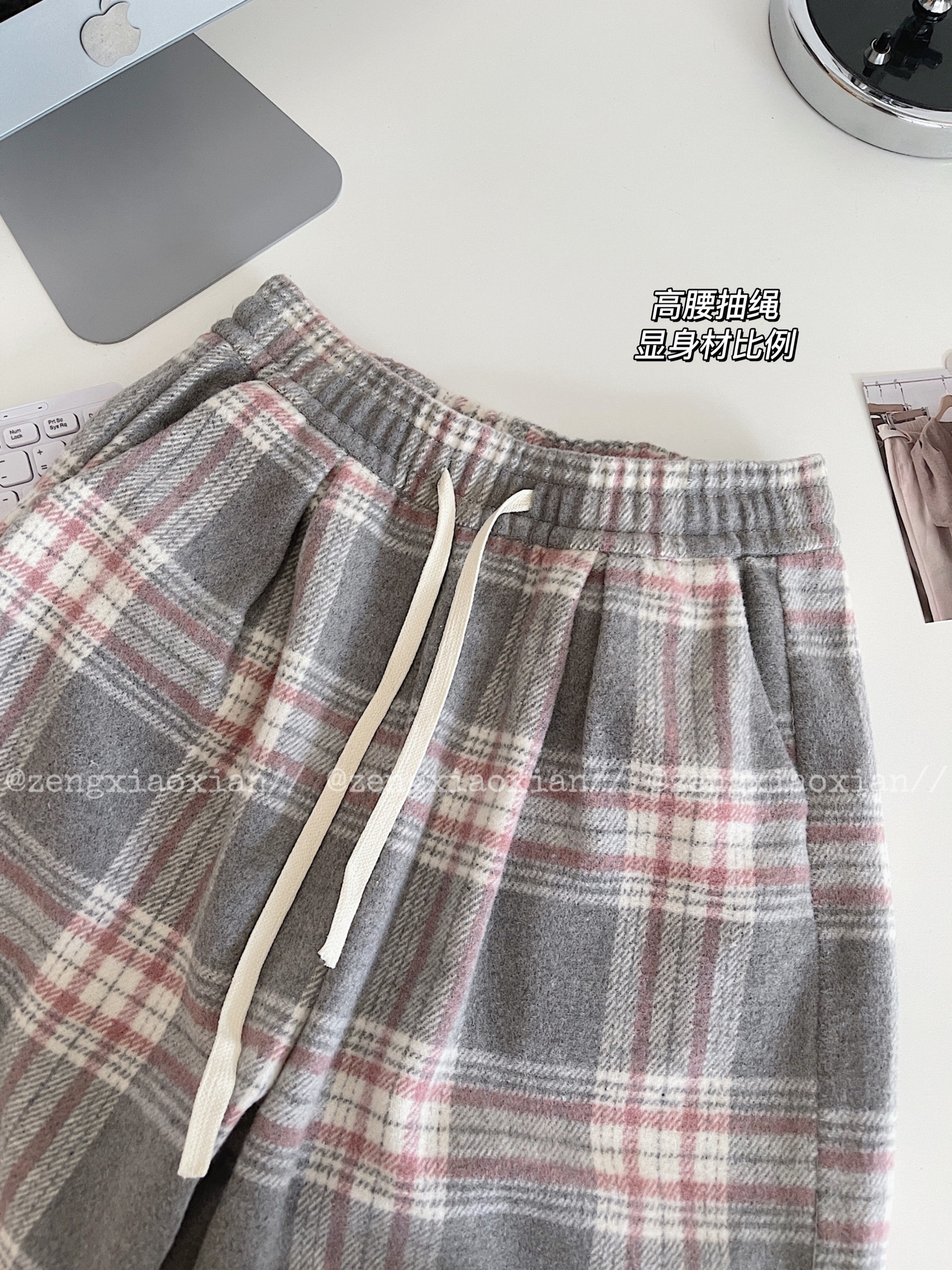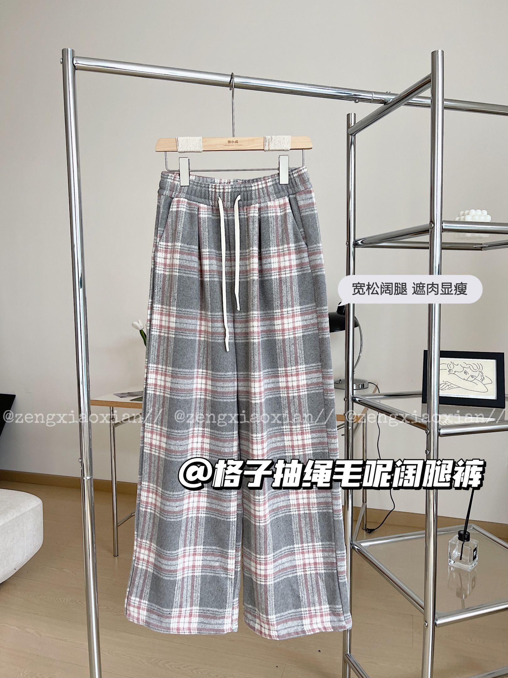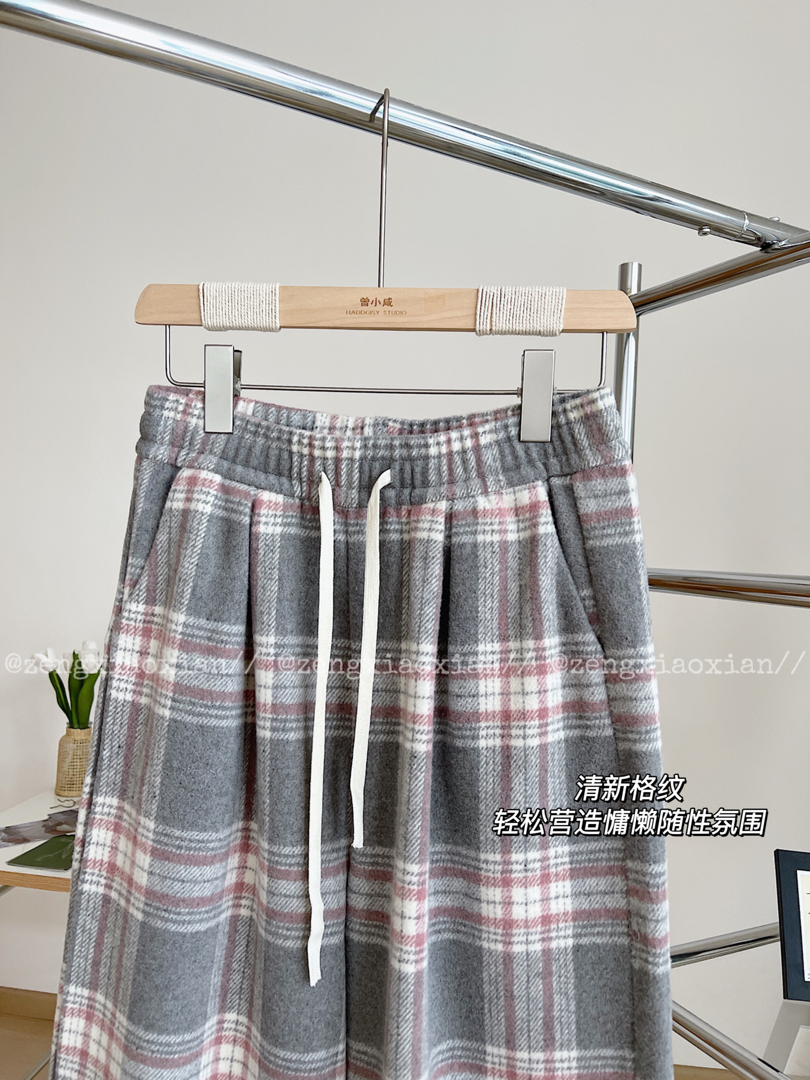 <曾小咸推荐> 灰格抽绳毛呢阔腿裤 日常价139/件 活动价99!!