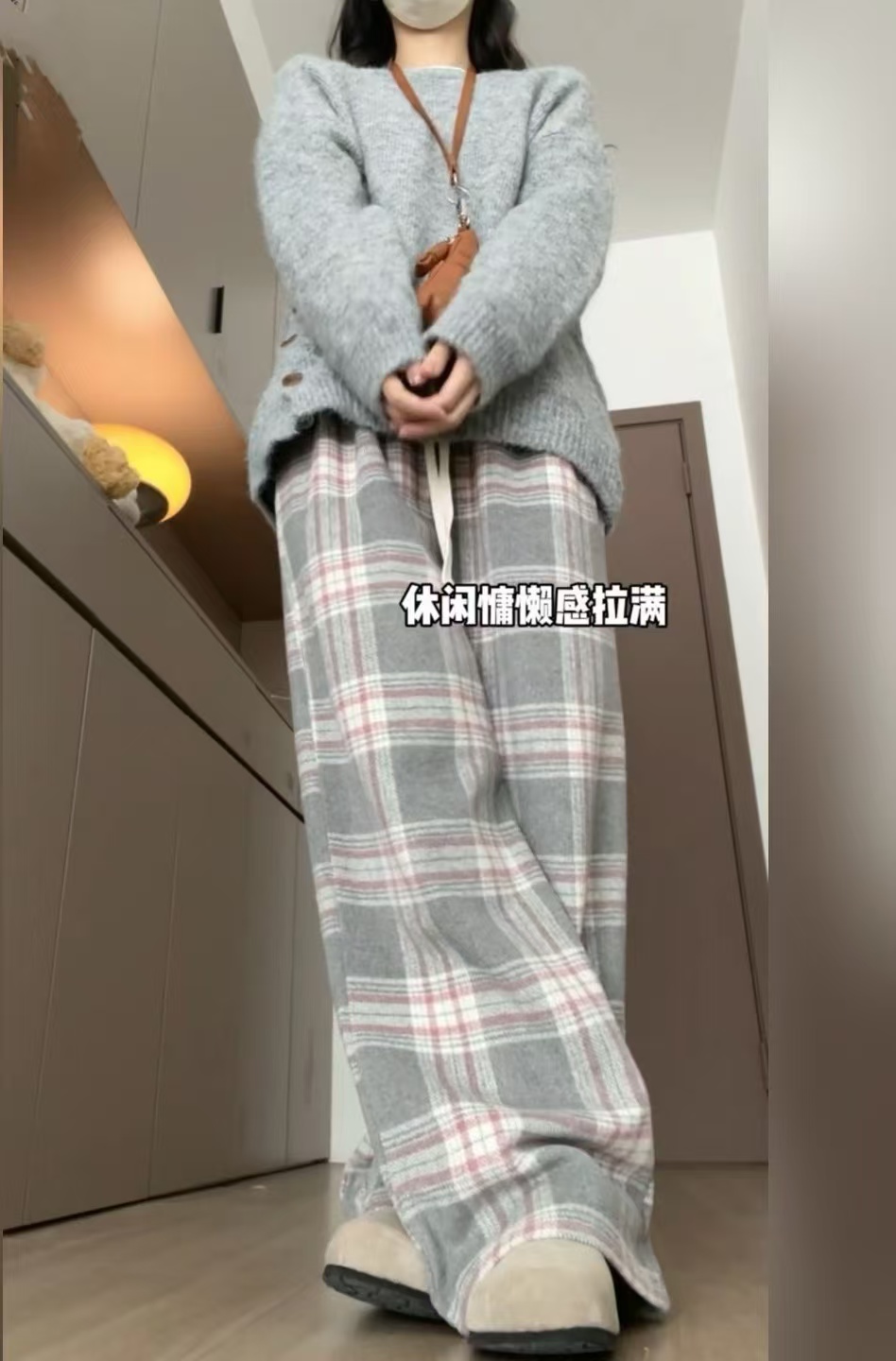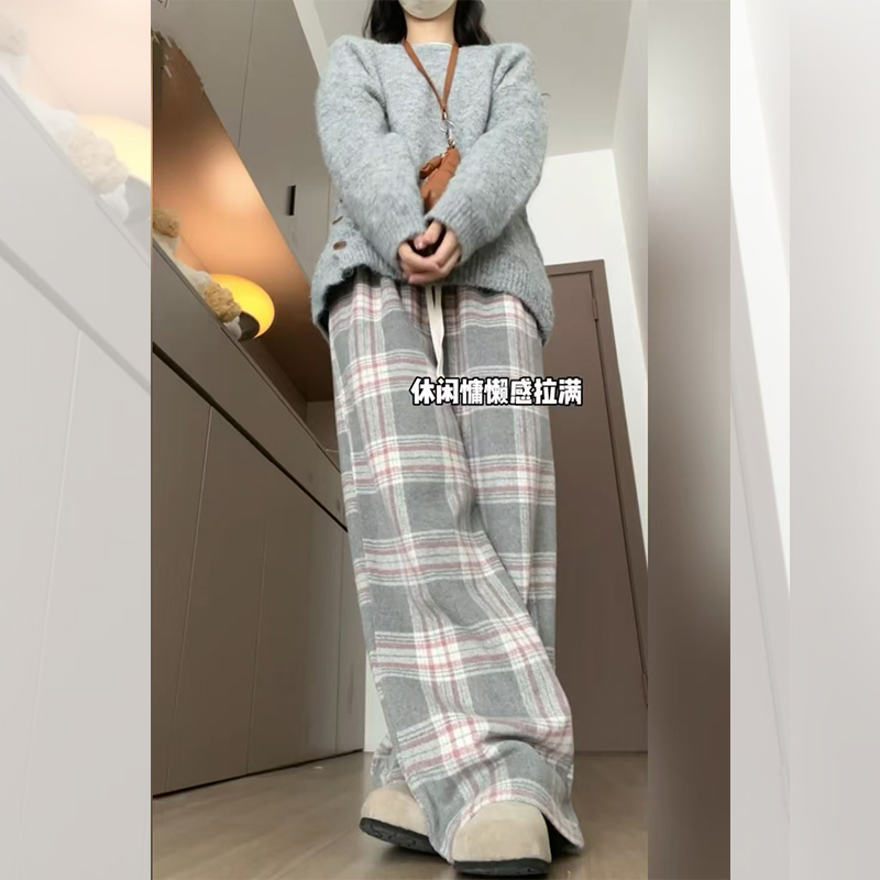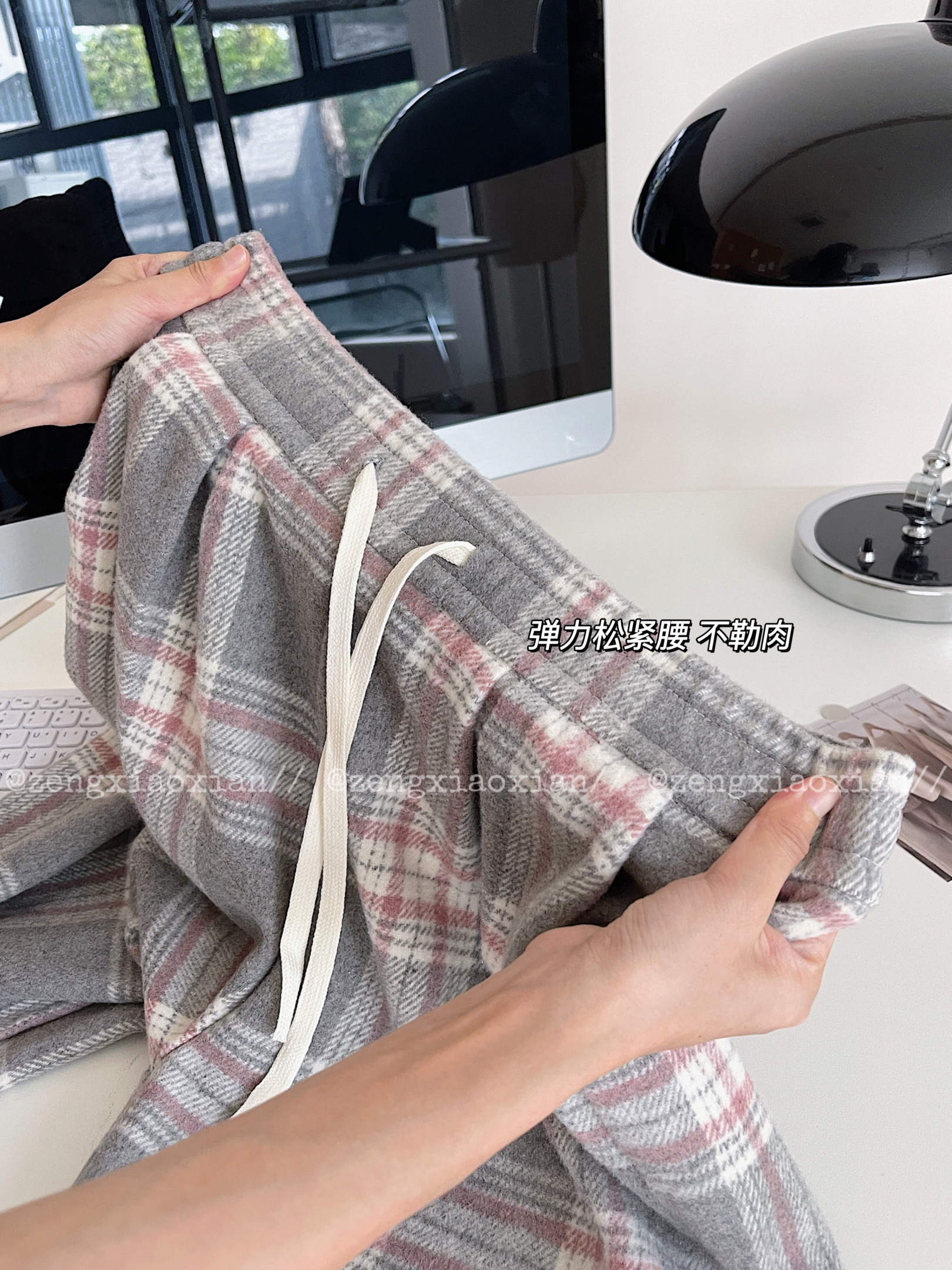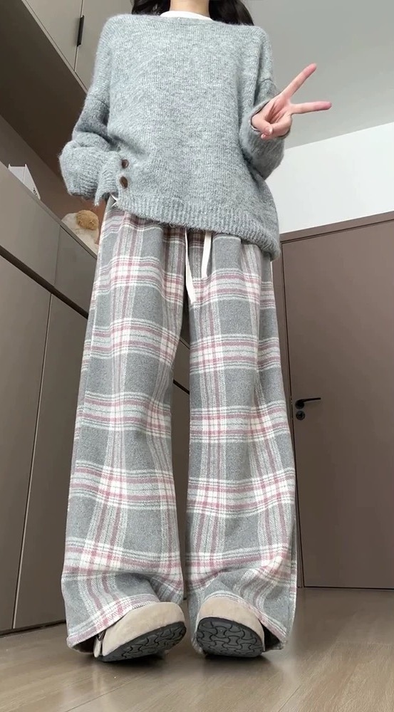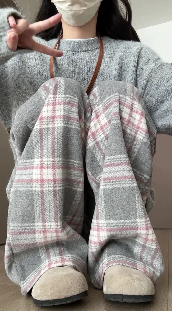 <曾小咸推荐> 灰格抽绳毛呢阔腿裤 日常价139/件 活动价99!!