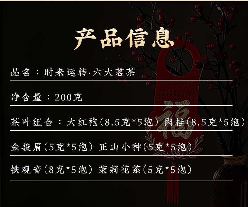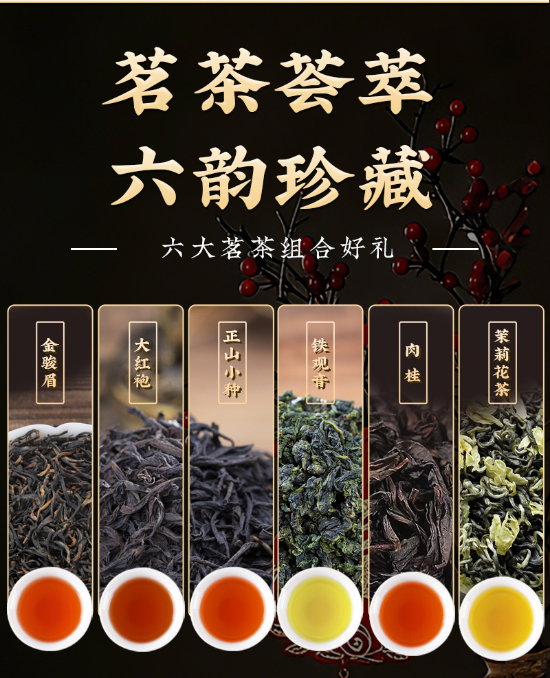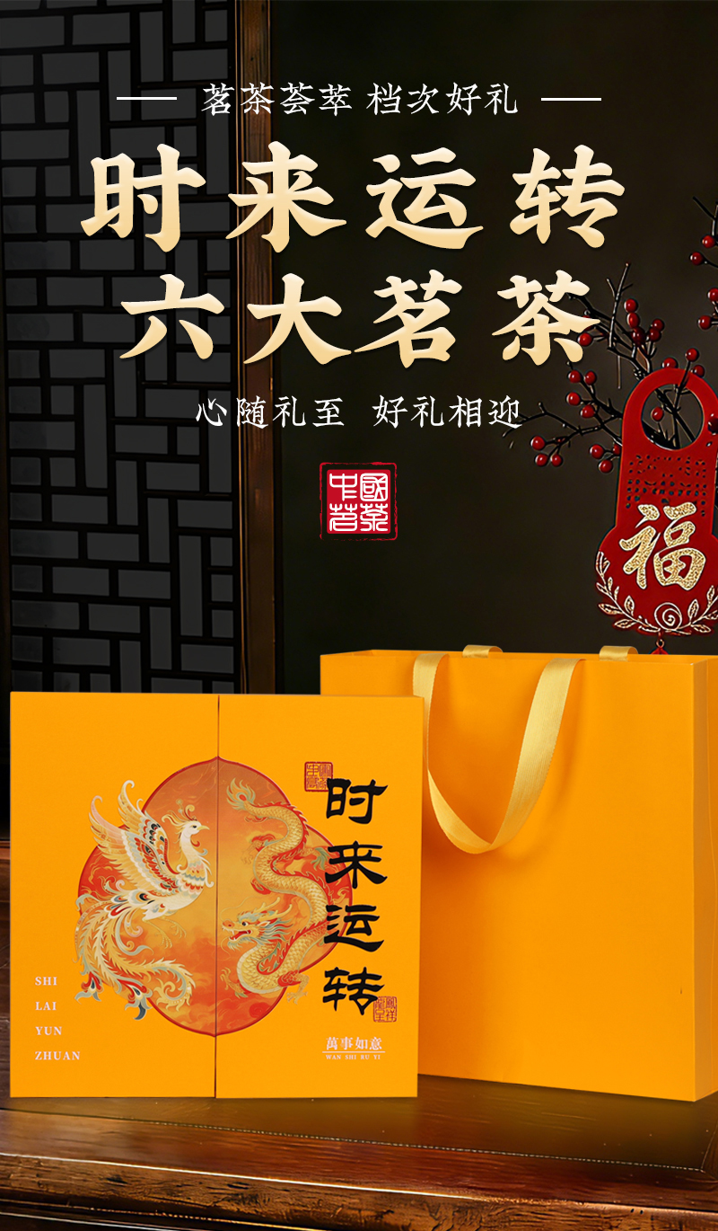 博馨时来运转-六大茗茶礼盒, 六大茗茶 茶汤透亮 口感醇厚 鲜活甘爽