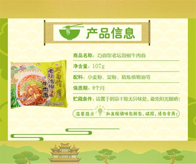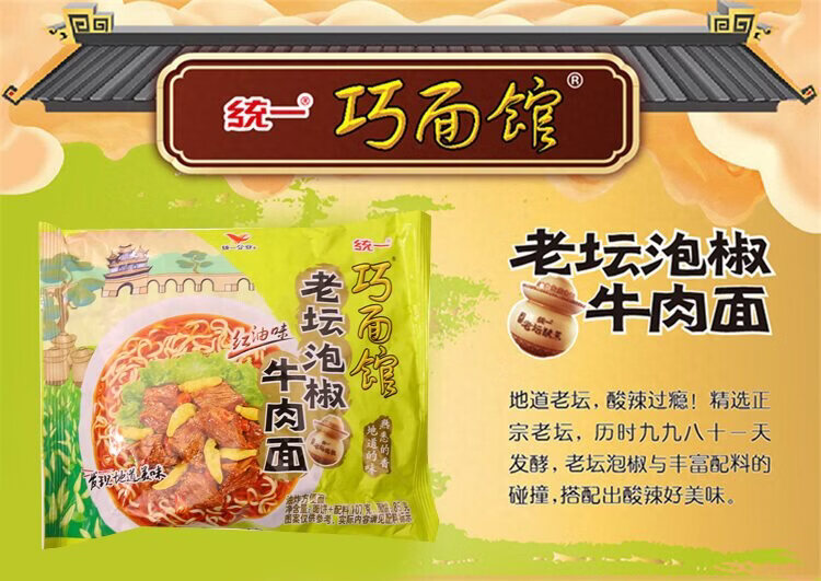 统一 巧面馆 老坛泡椒牛肉面红油味107g/袋