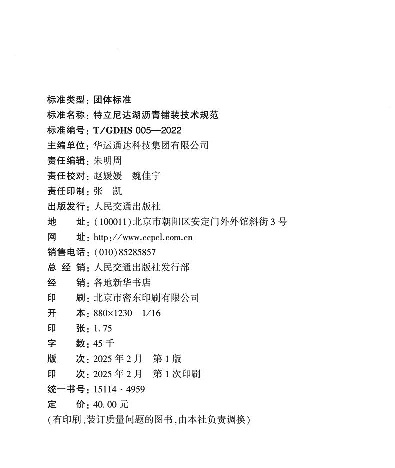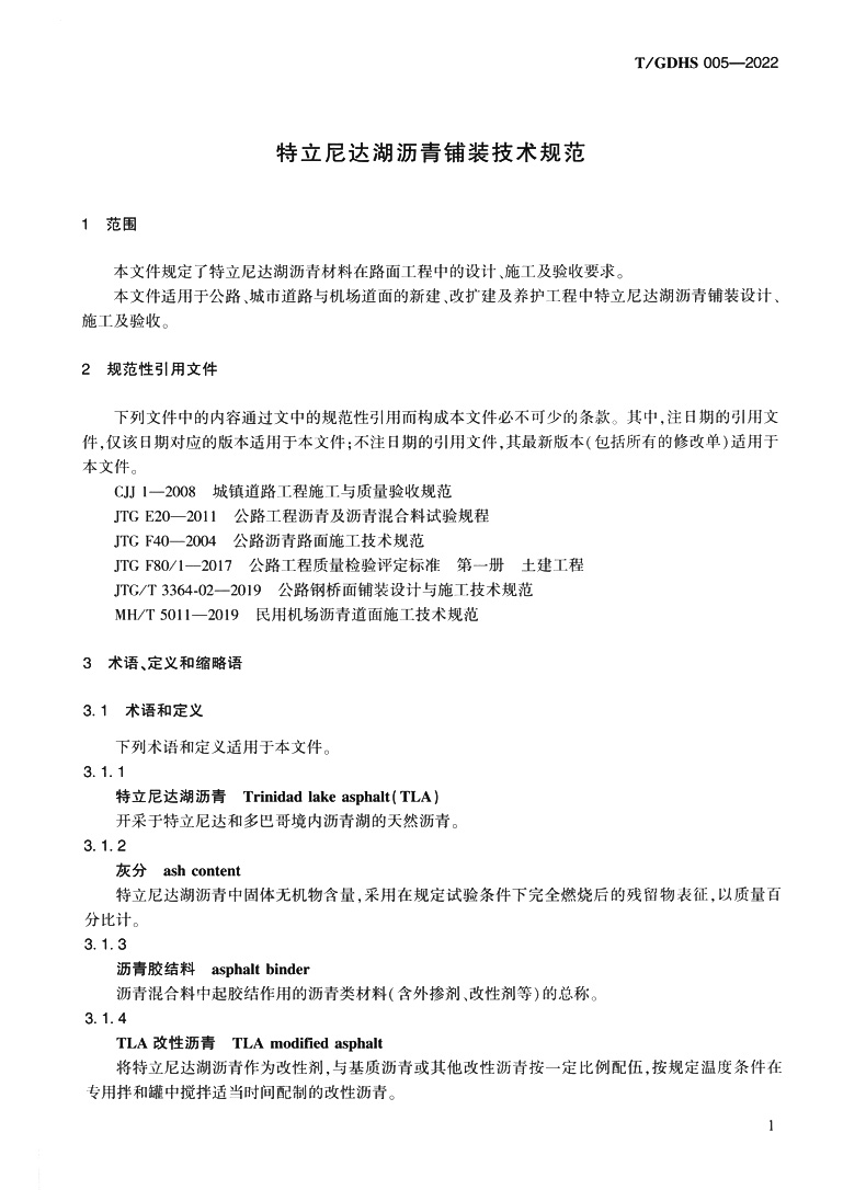 书名:特立尼达湖沥青铺装技术规范(T/GDHS 005—2022)