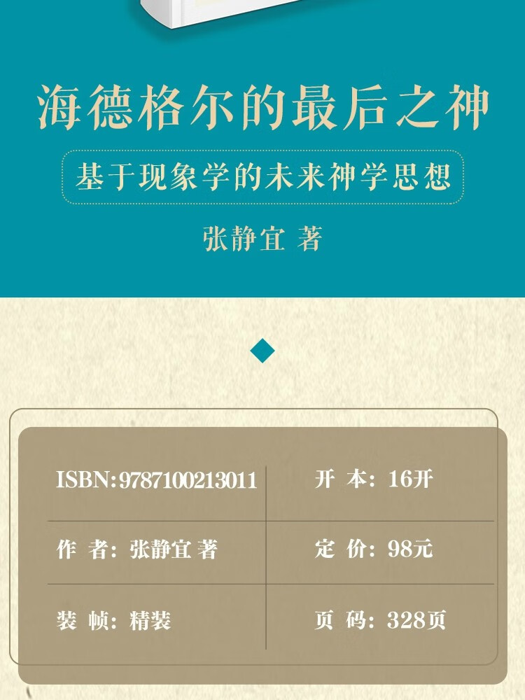 海德格尔的最后之神:基于现象学的未来神学思想(未来哲学丛书) 张静宜 著 商务印书馆
