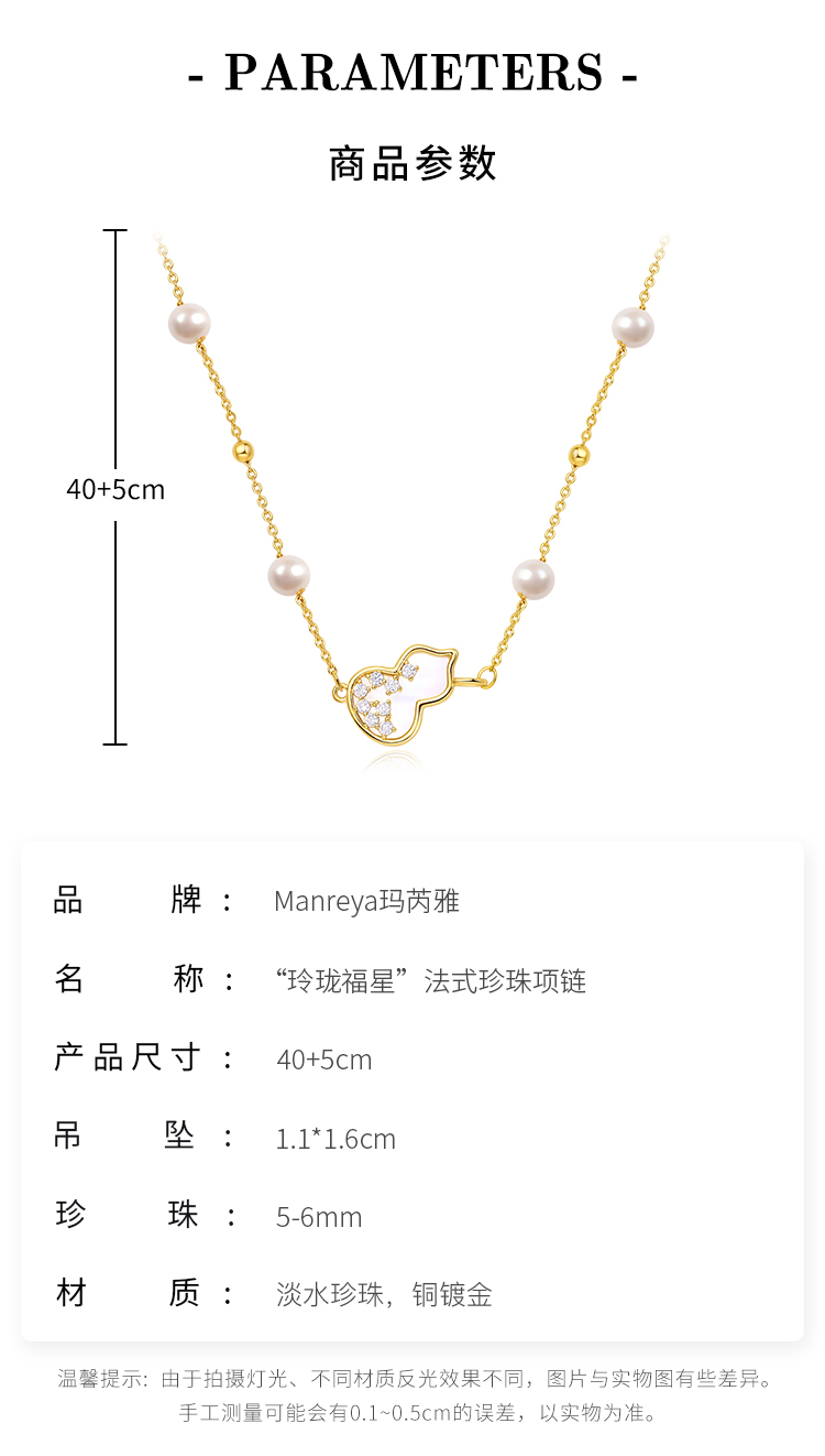 Manreya玛芮雅“玲珑福星”法式珍珠项链气质高雅项链