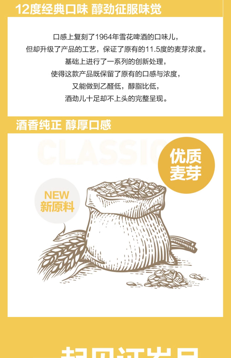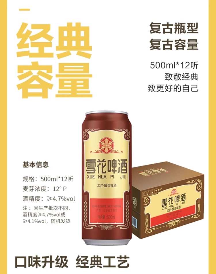 雪花经典啤酒(老雪)12度500ml易拉罐*12听