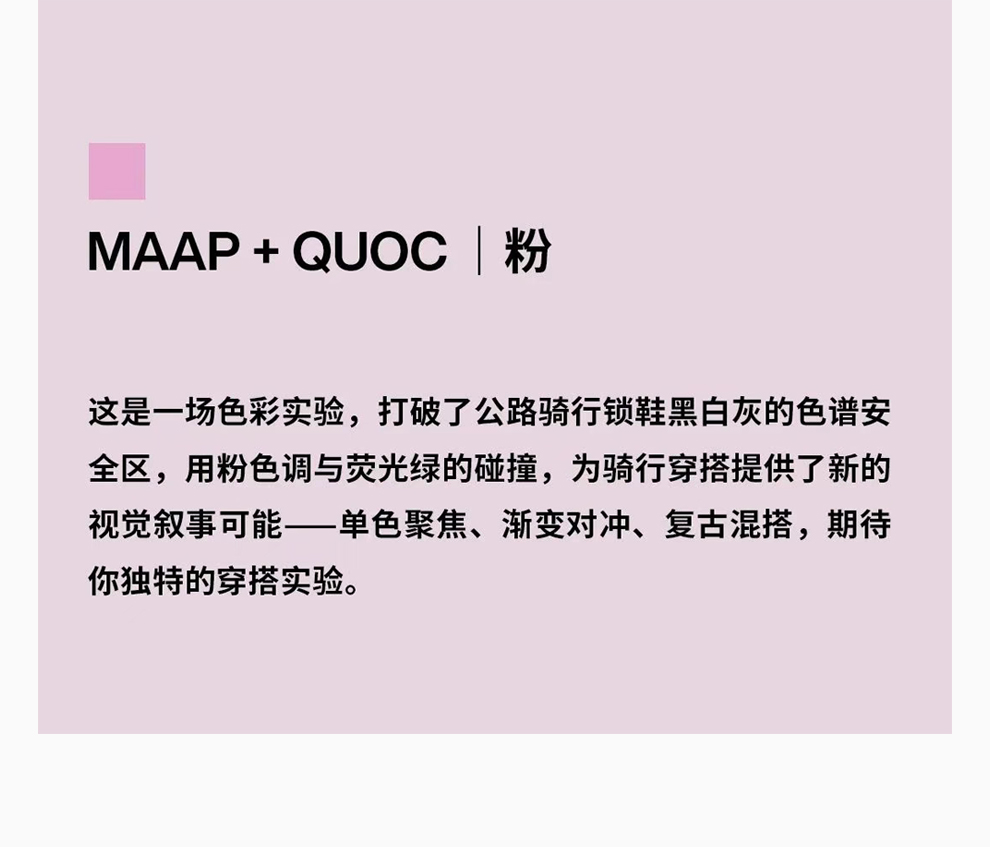 - MAAP作为澳洲功能性骑行服,其出色的时尚设计元素为骑行生活增添色彩。MAAP在为专业车手提升性能表现方面也毫不妥协。