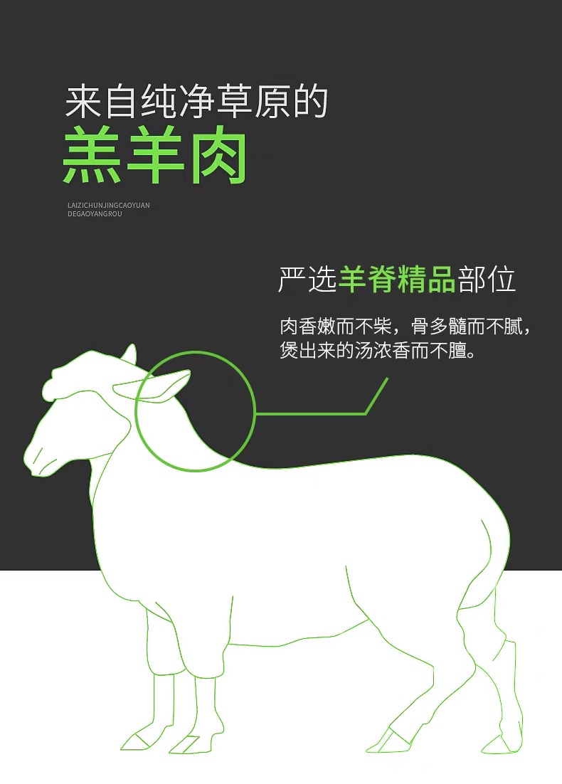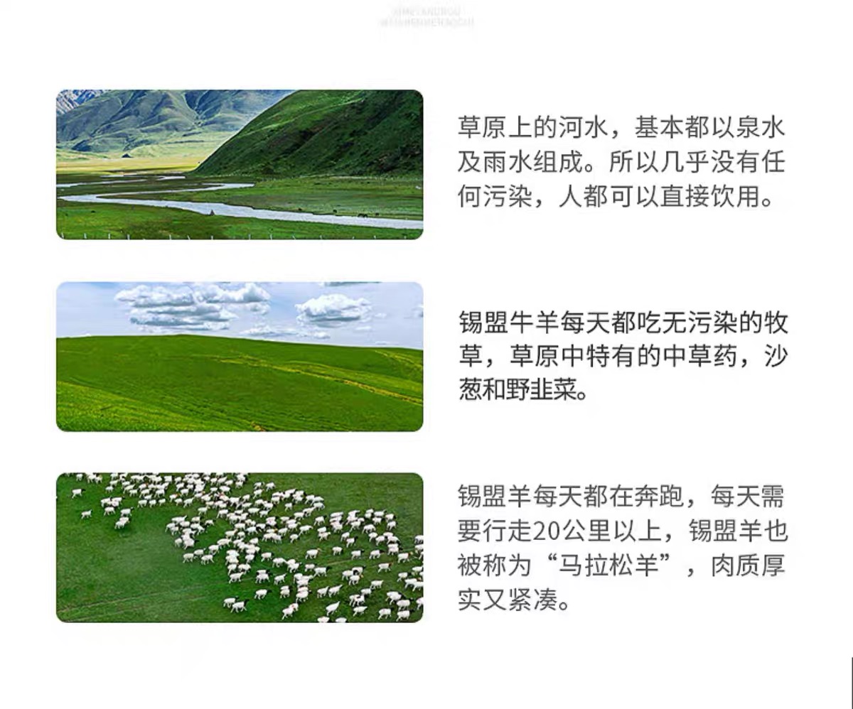 ①源自内蒙乌兰察布,自然生长羔羊,羊肉温和鲜美不膻;
