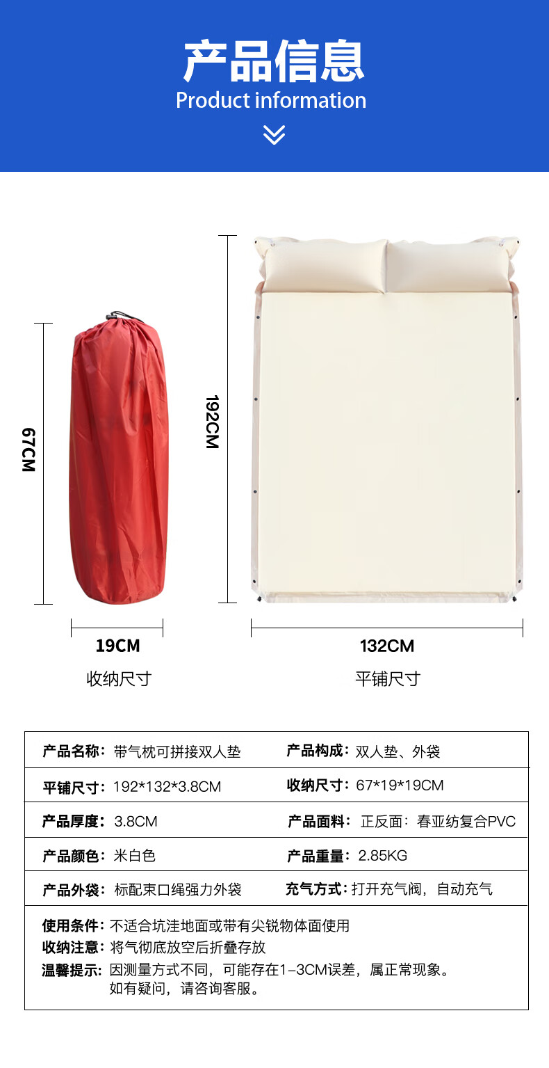 【小家电】趣游帮带枕可拼接双人海绵午睡垫Y28-S38 HF