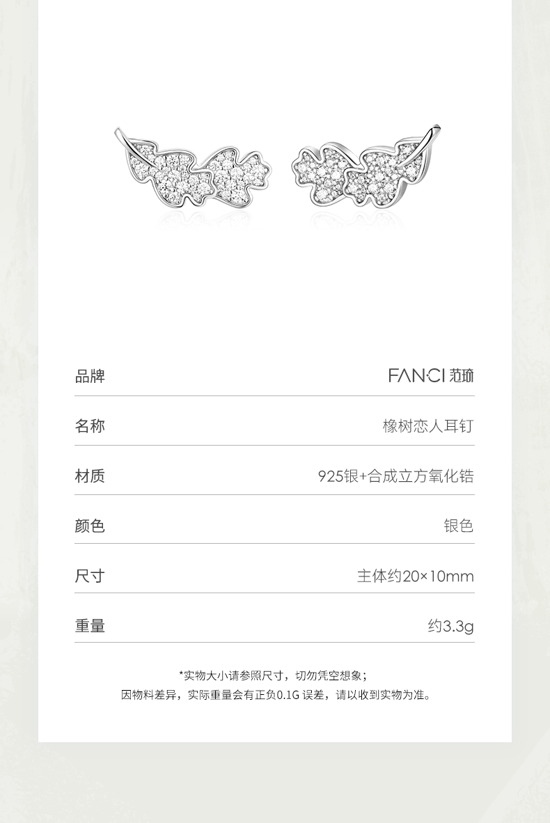 【明星同款】【橡树恋人耳钉】Fanci范琦 致橡树系列 下单即赠精美包装+顺丰包邮+运费险