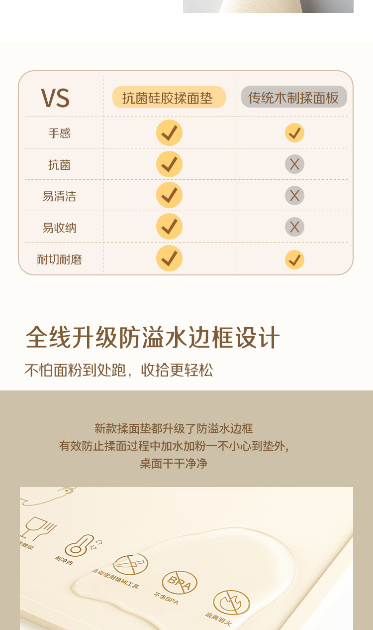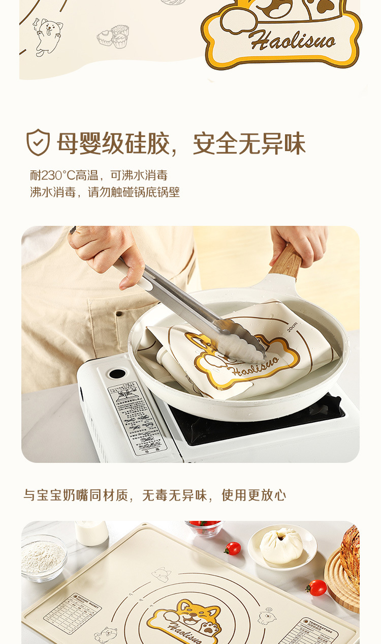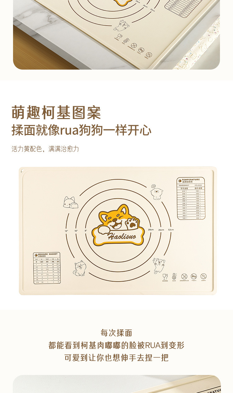「萌趣款擀面垫」硅胶垫家用擀面垫和面垫大号揉面垫食品硅胶面板烘焙擀面垫子厨房用品