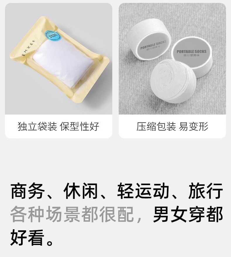 【一次性用品】嫚熙纯棉一次性袜子男女款压缩便携旅行中筒短袜防臭军训出差日抛