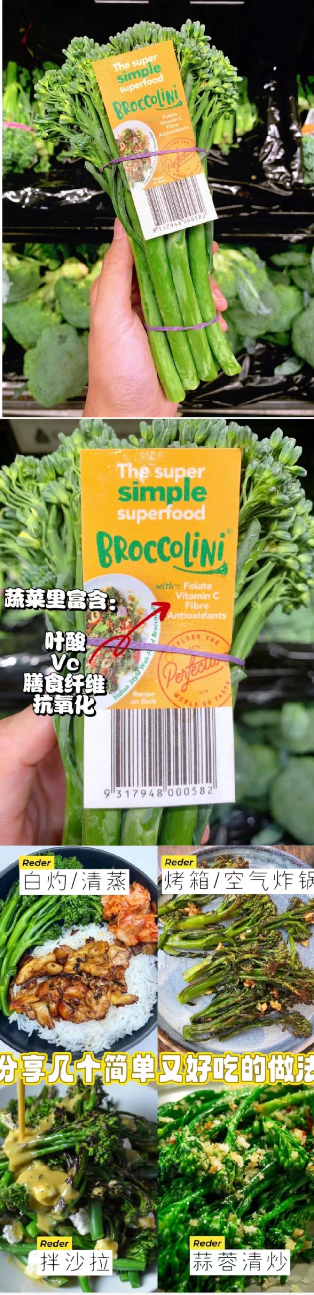 山姆同款在售~口感介于兰和西兰花之间,有西兰花头的饱满绵软,又有芥蓝杆杆的脆嫩清甜~平常白灼,清炒,清蒸,或者烤箱/空气炸锅微微烤一烤撒点盐和黑胡椒就很好吃 ~做熟后也很脆嫩清爽不会面唧唧,在我心中简直就是完美的存在