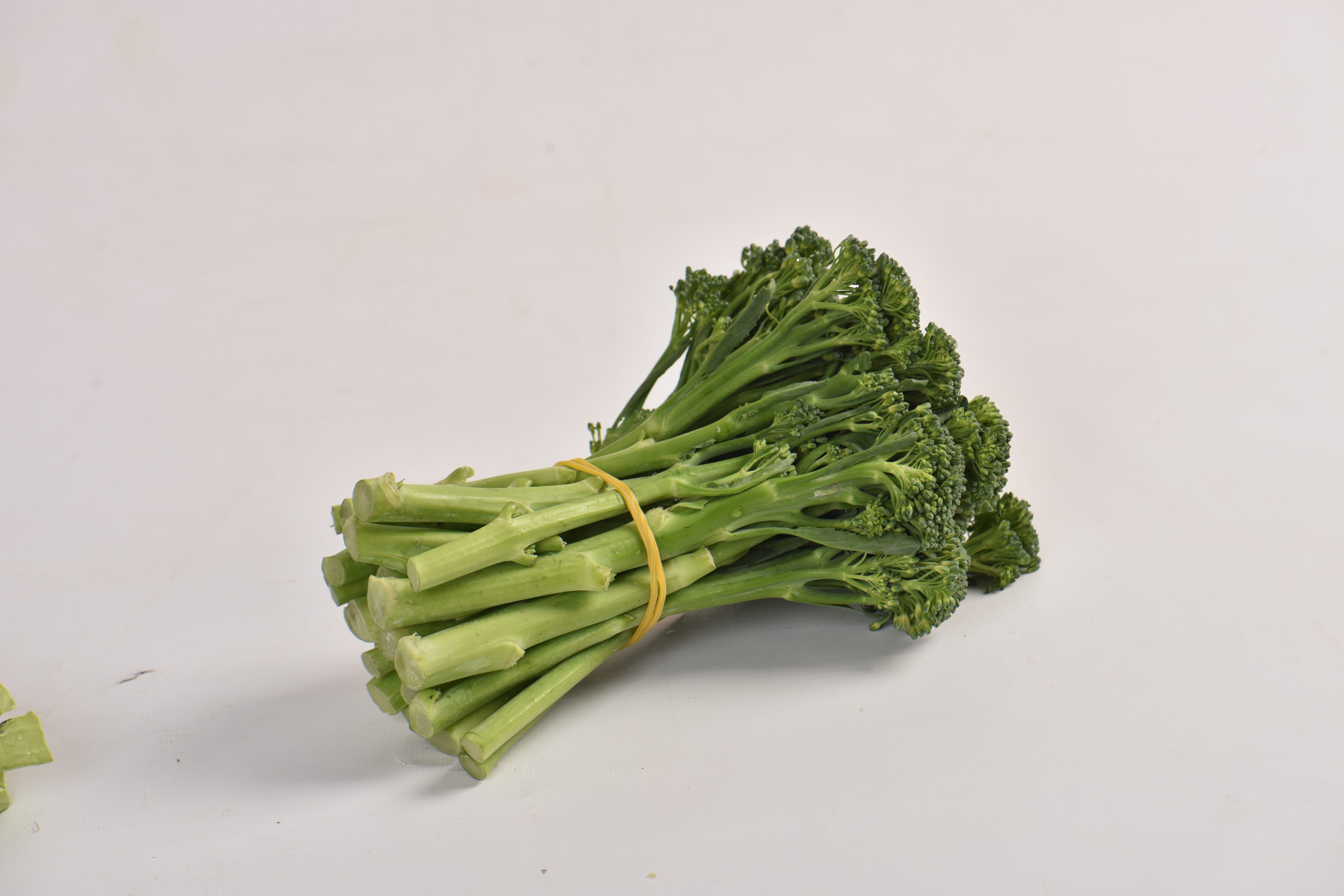 甜杆西兰花是芦笋和西兰花的延伸品种,长度为15-25厘米,姿态细长、口感鲜甜;整颗可食。