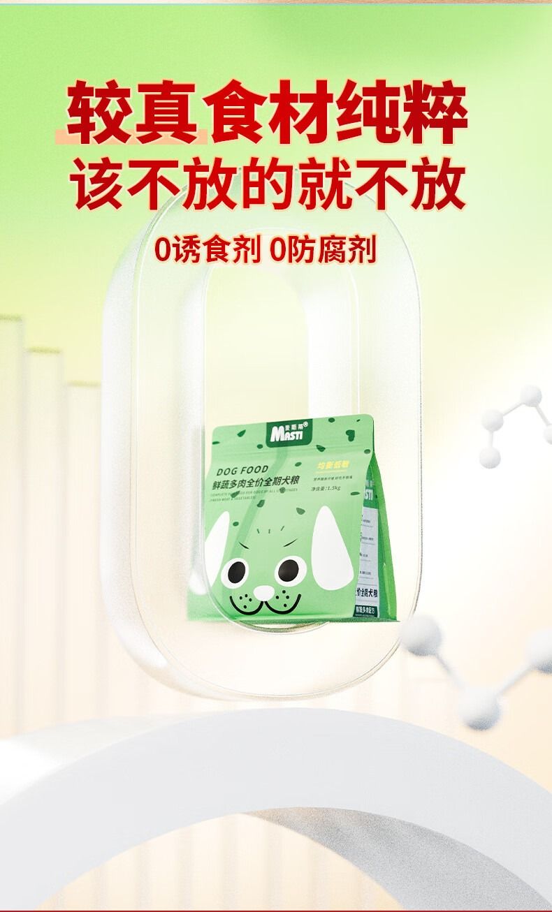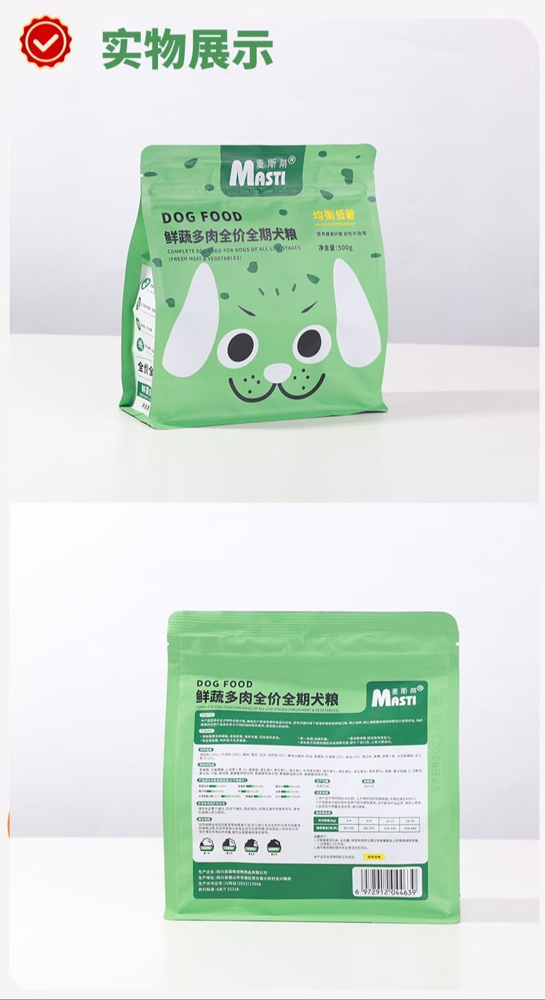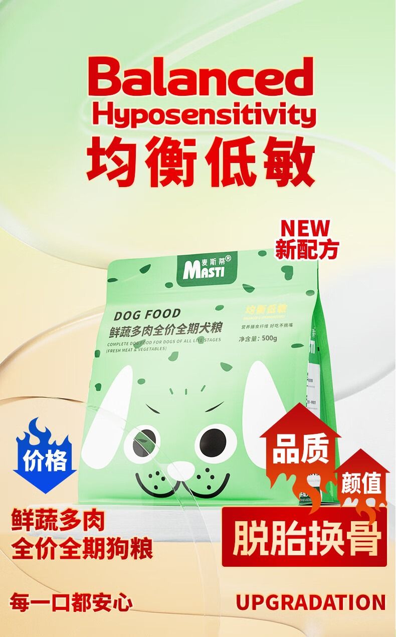 麦斯蒂狗粮鲜肉蔬菜多拼粮增肥发腮均衡营养全期犬粮500g/袋
