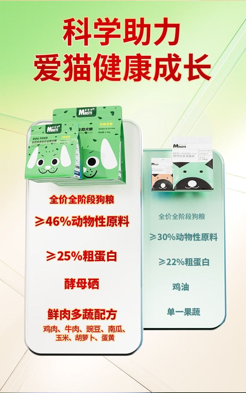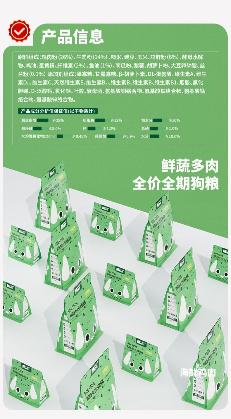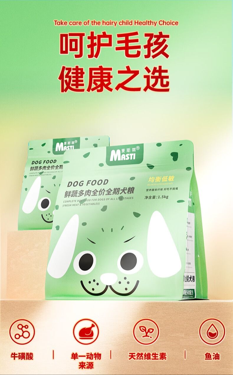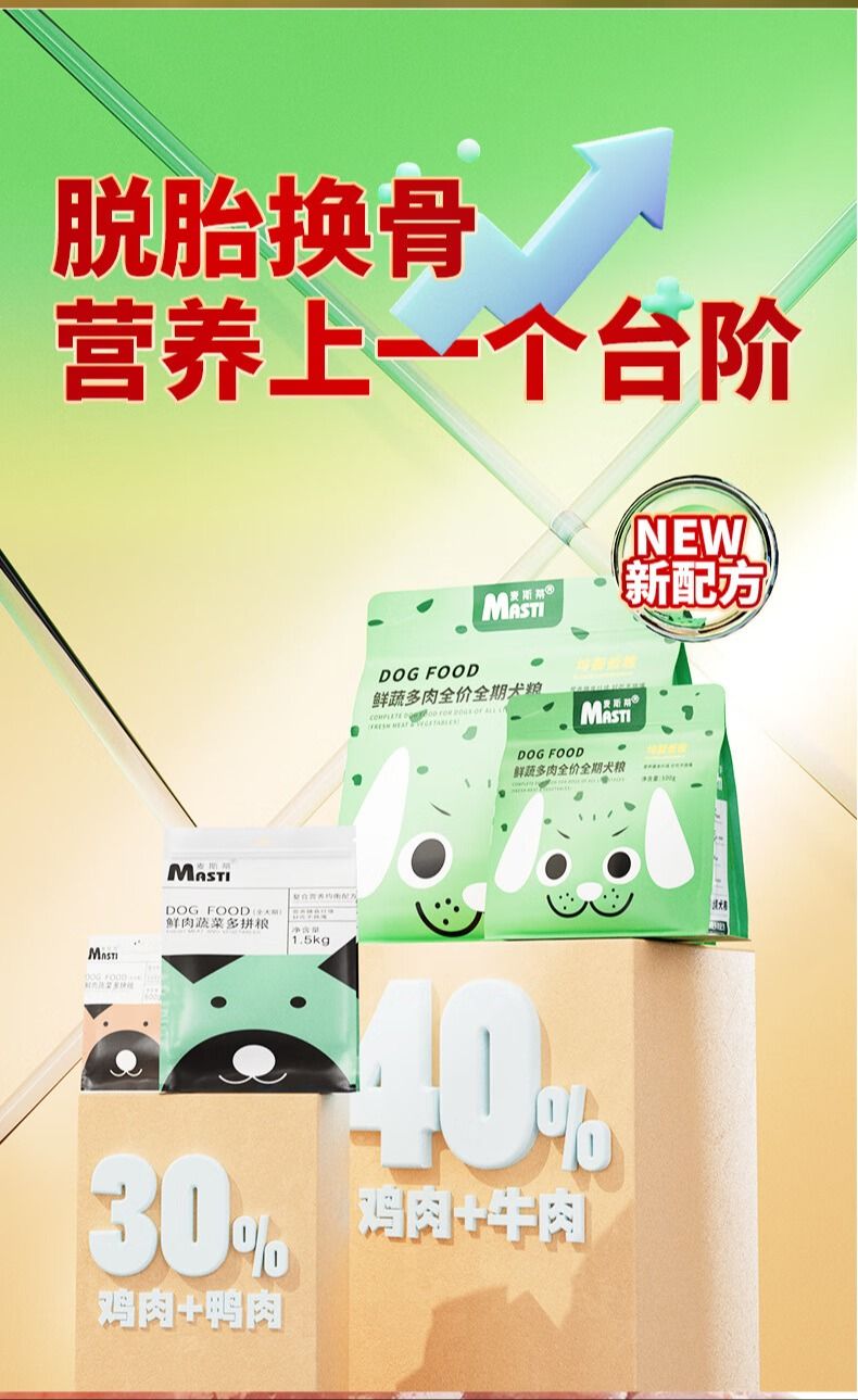 麦斯蒂狗粮鲜肉蔬菜多拼粮增肥发腮均衡营养全期犬粮500g/袋
