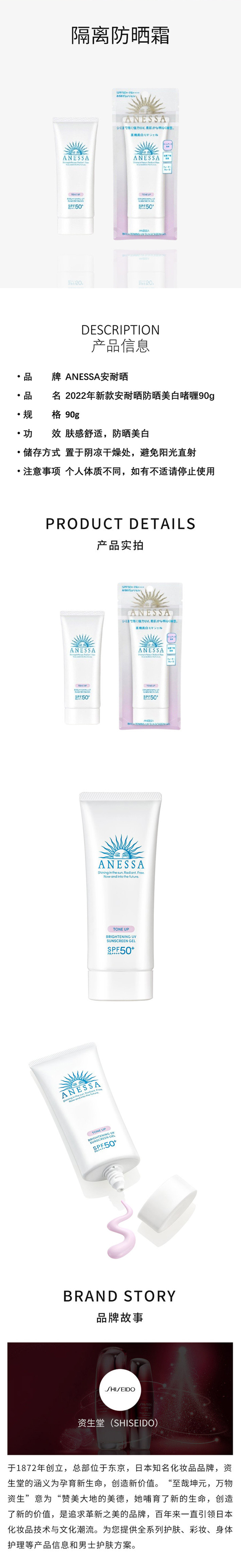 资生堂 [本土版] 安耐晒 小白瓶脸部美白防晒霜90g