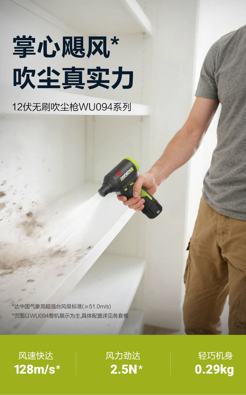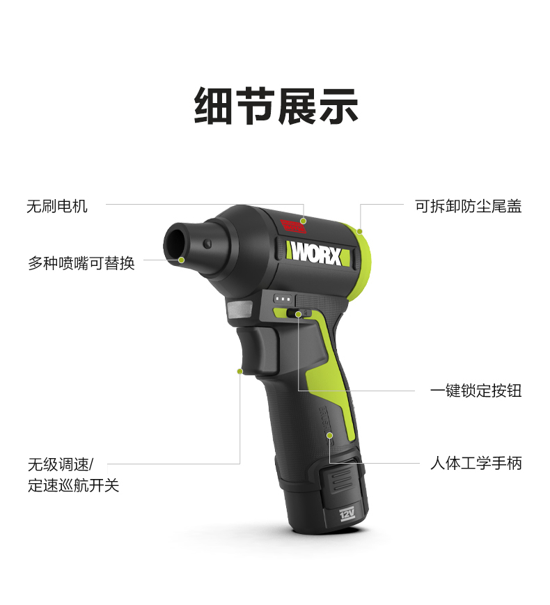 威克士12V暴风吹尘枪WU094锂电吹风枪吹灰强力吹风机