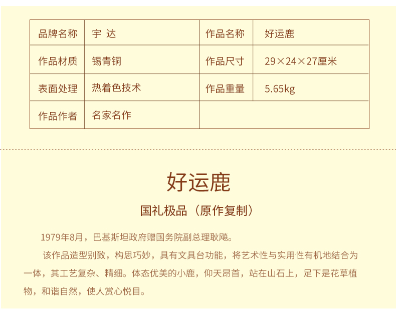 宇达青铜全铜摆件《好运鹿》仿复制国礼 家居 装饰 工艺礼品 摆件