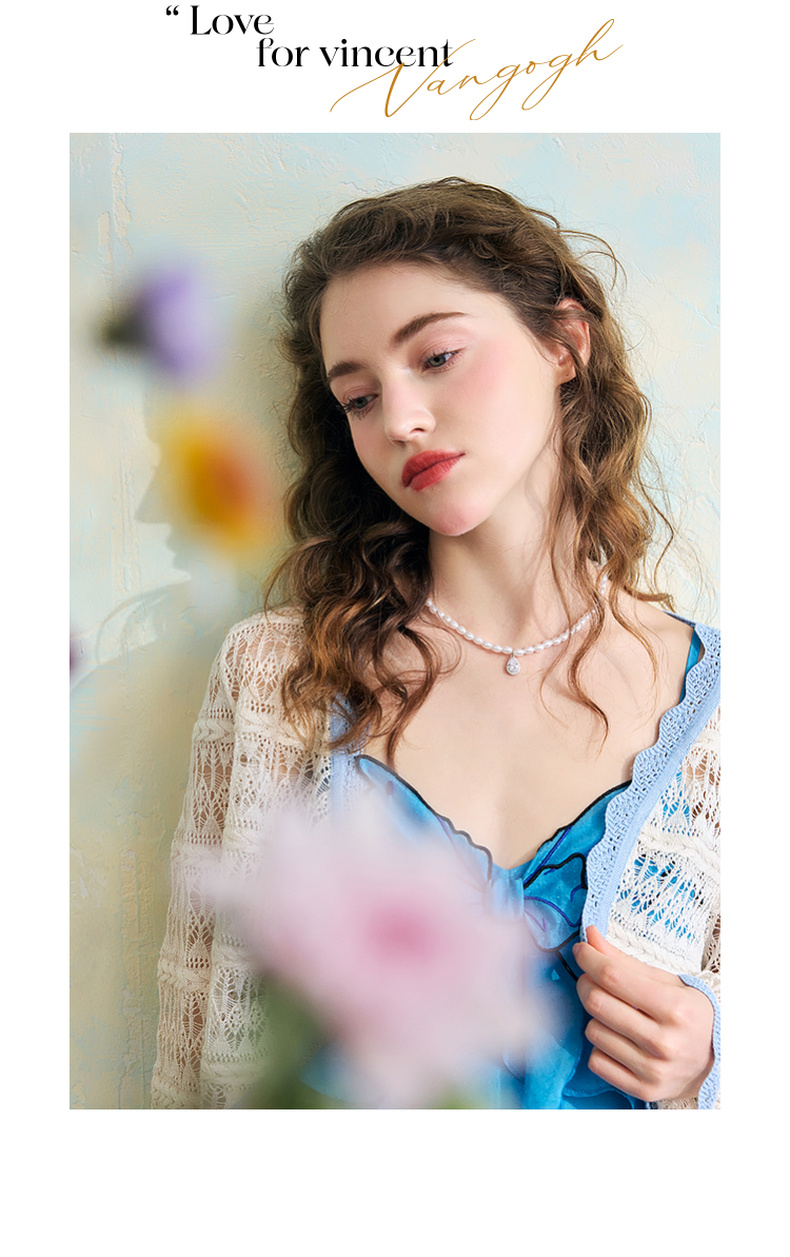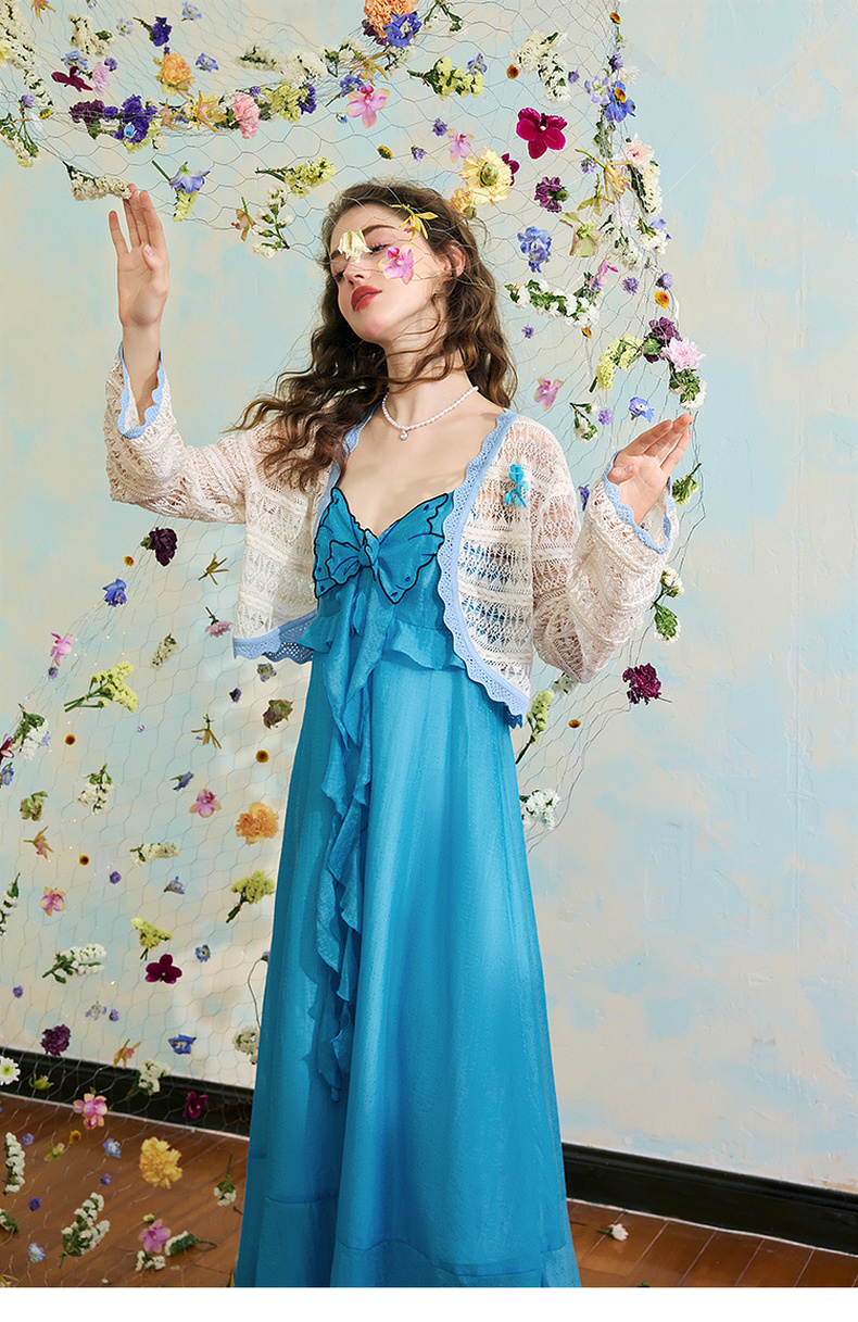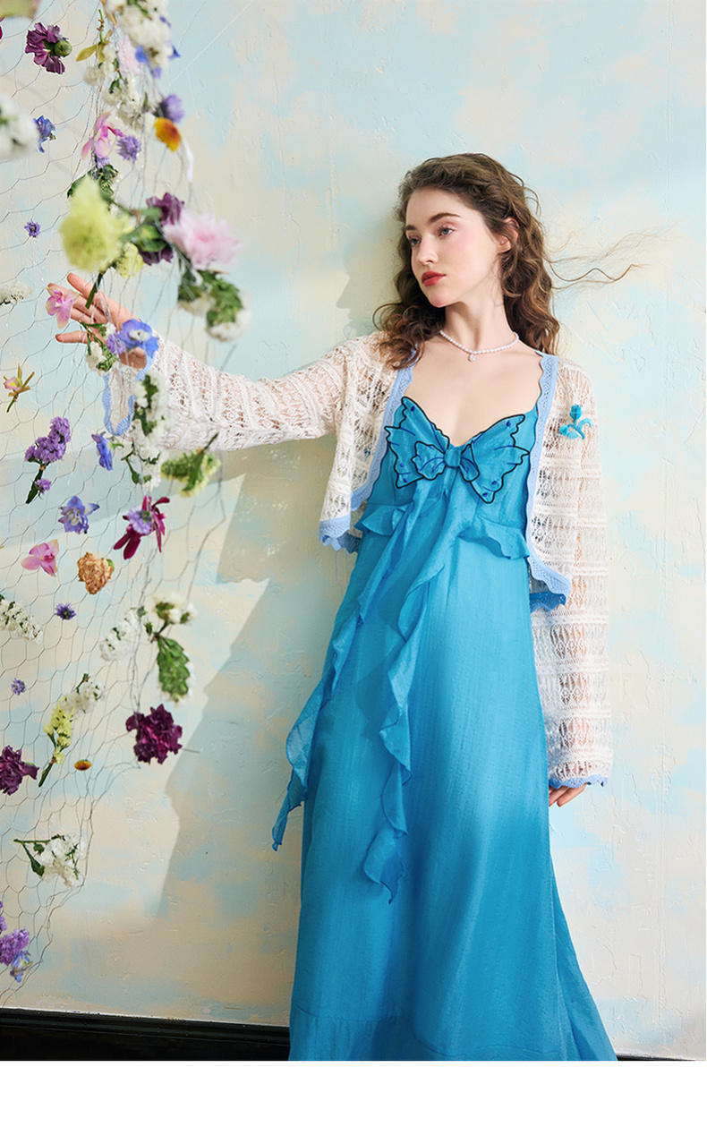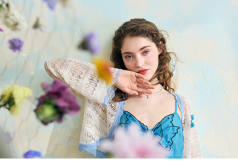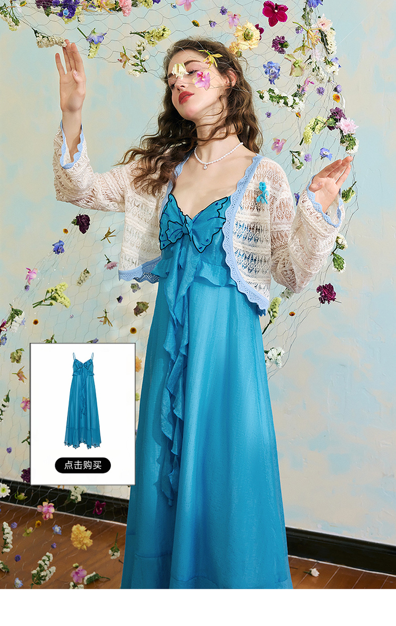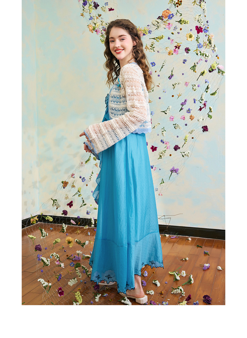 两三事梵高文艺 夏沫可可 2024夏季新款拼色边镂空针织衫女配胸针