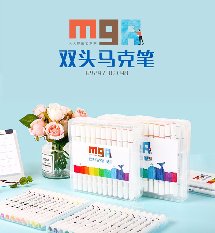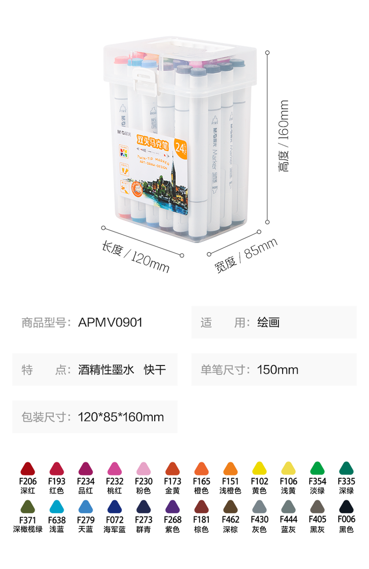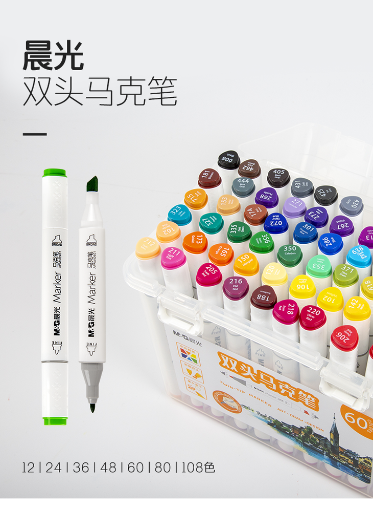 晨光马克笔APMV0901双头三角杆24色(酒清)
