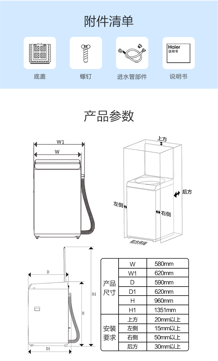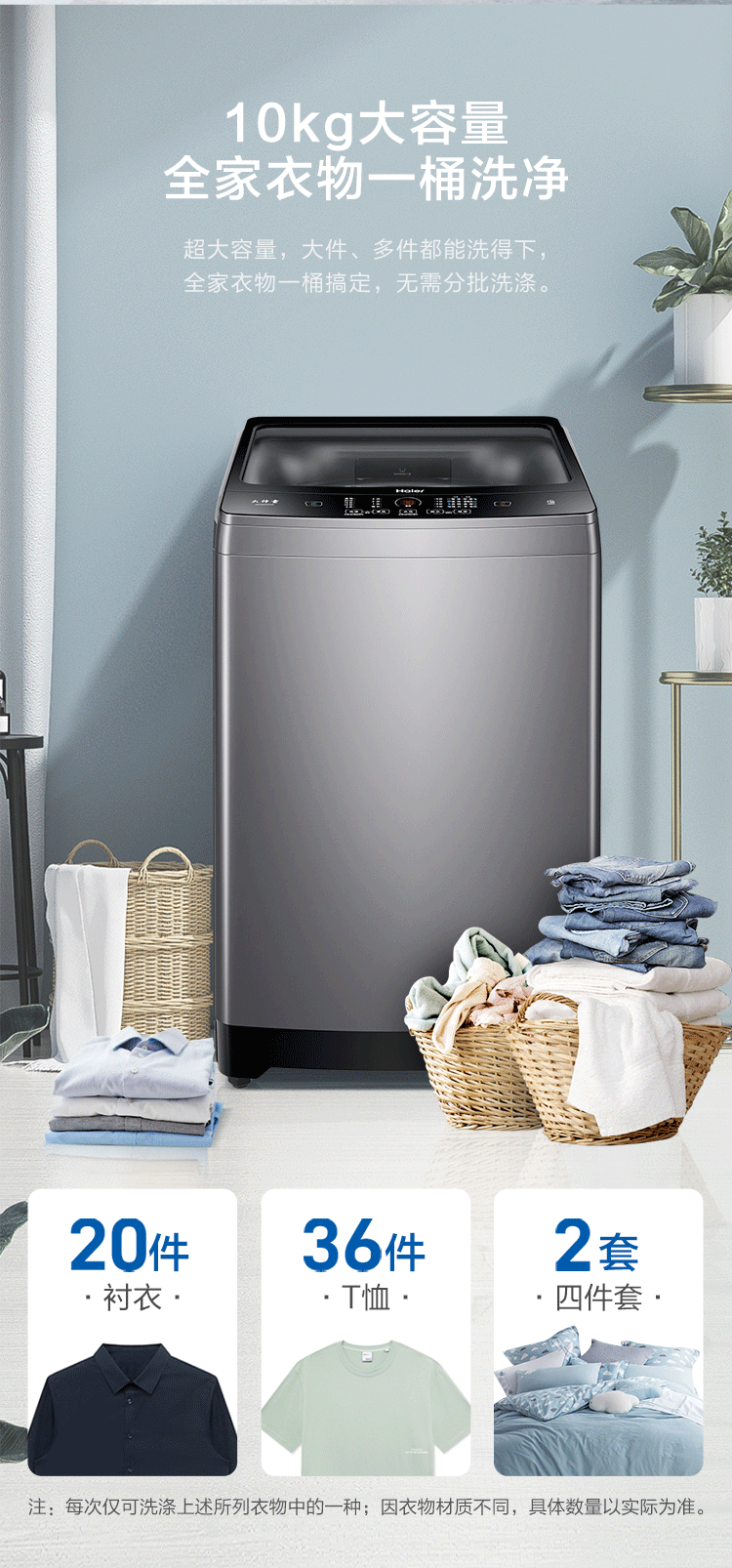 海尔(Haier)定频玻璃盖系列 10KG波轮洗衣机 玻璃盖 大容量 580平台大内筒 EB100Z32Pro2【专】