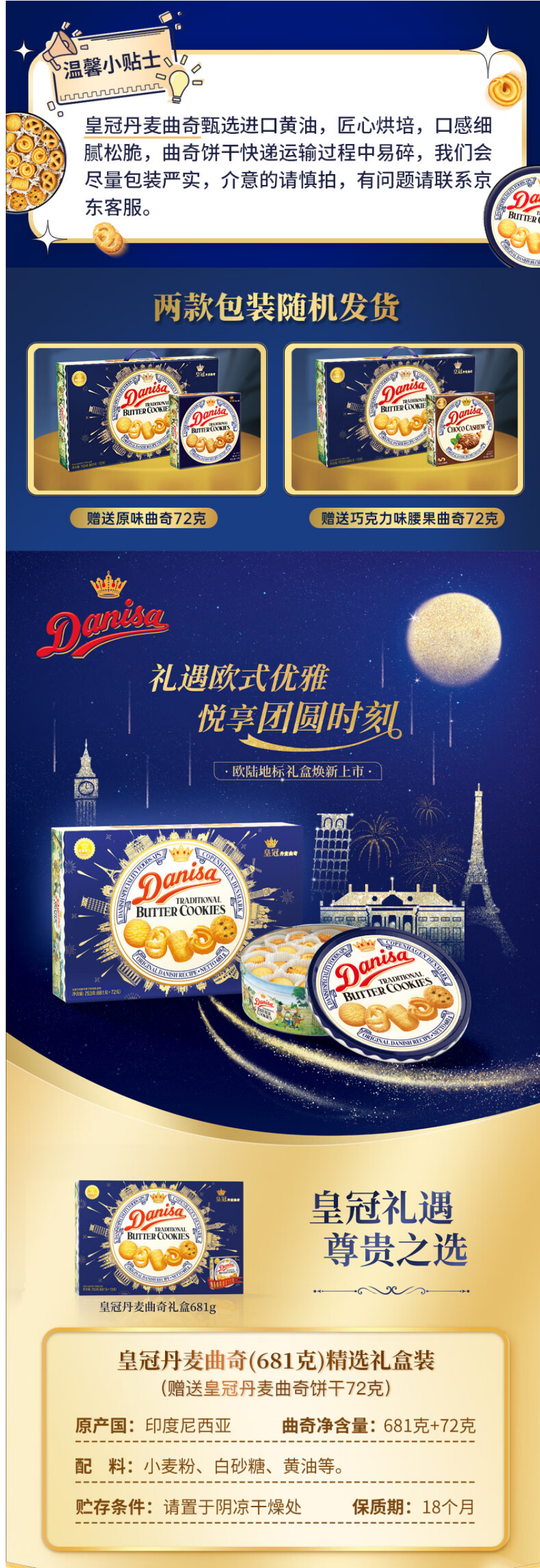 皇冠(danisa)丹麦曲奇饼干礼盒681g 休闲零食送礼品黄油 印尼进口(两款混发) 2020890