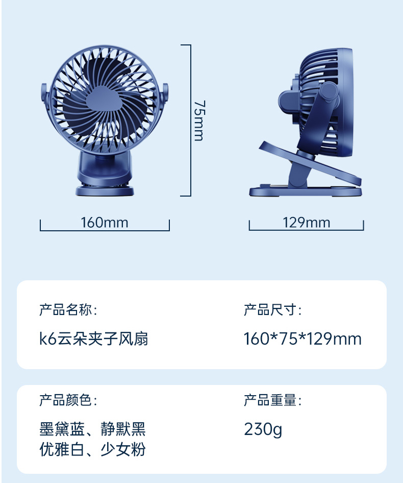 【精选】迪菲丝妮桌面云朵夹子充电款风扇(四色可选)