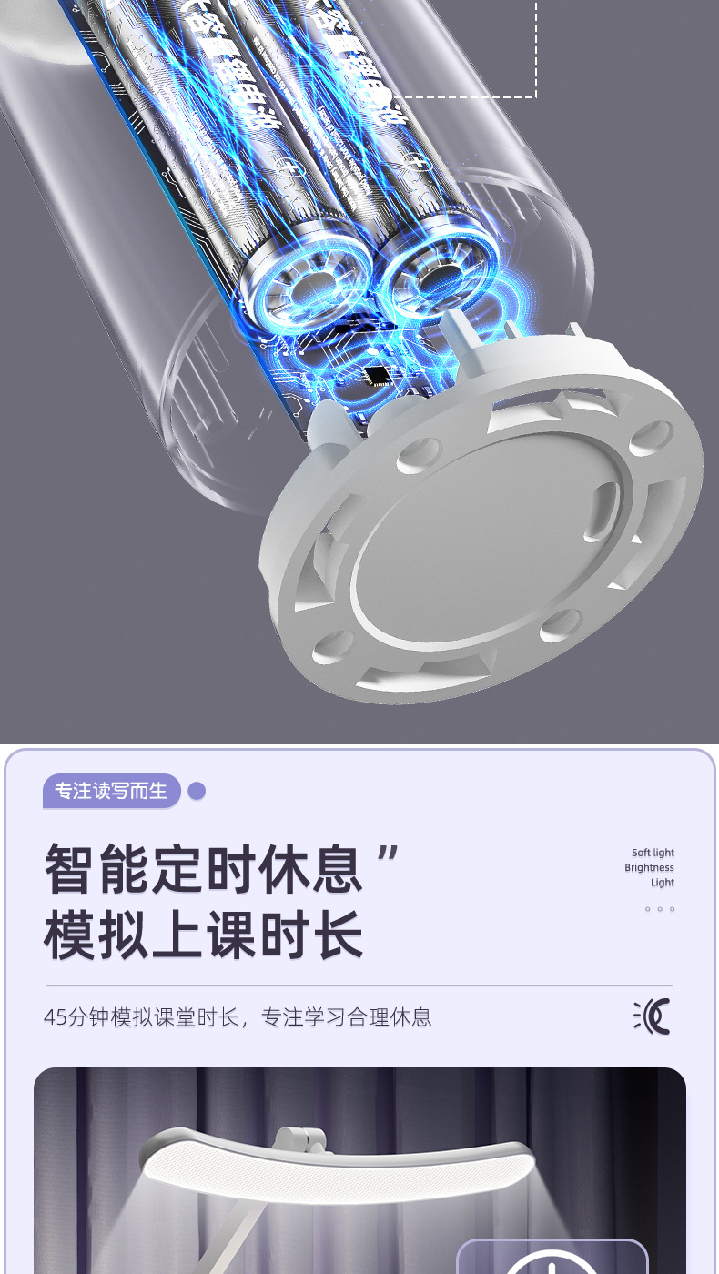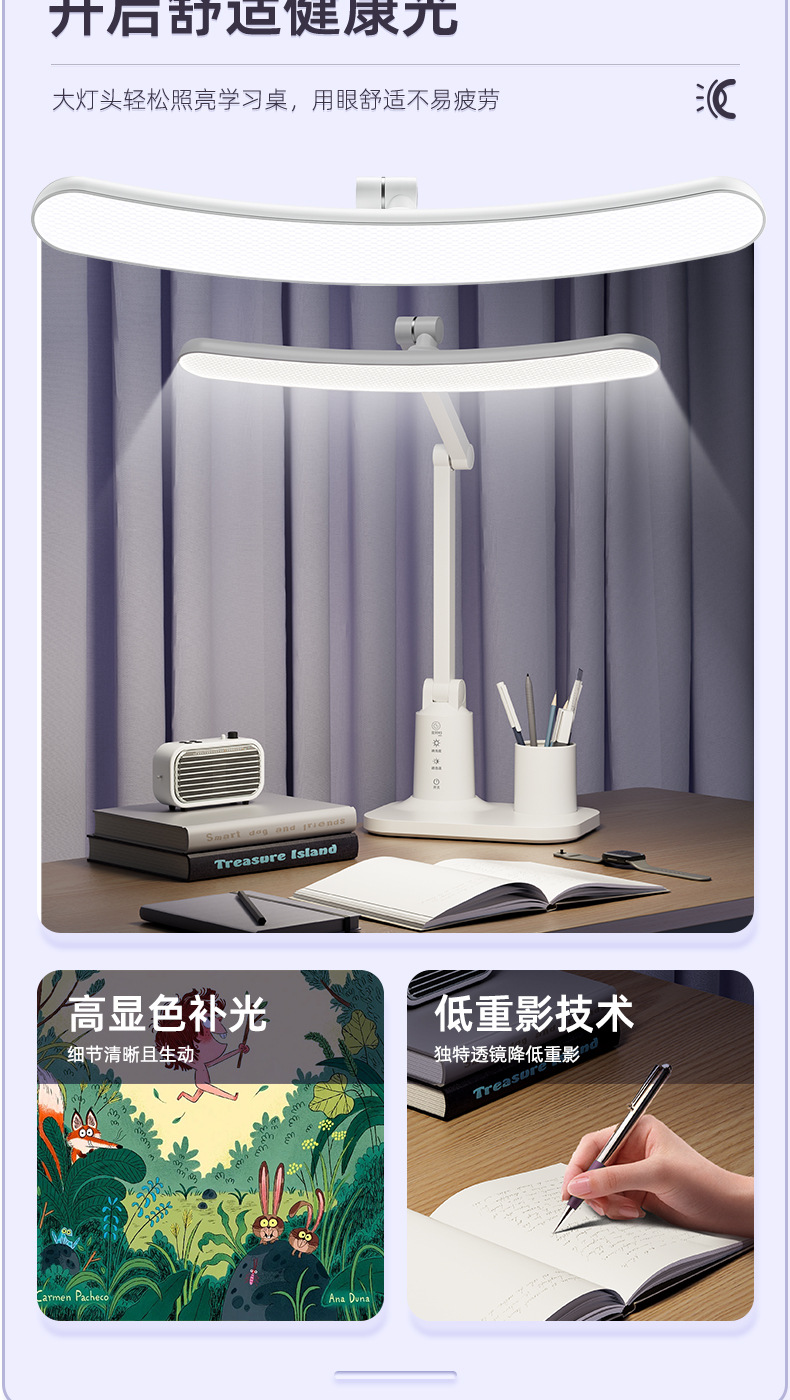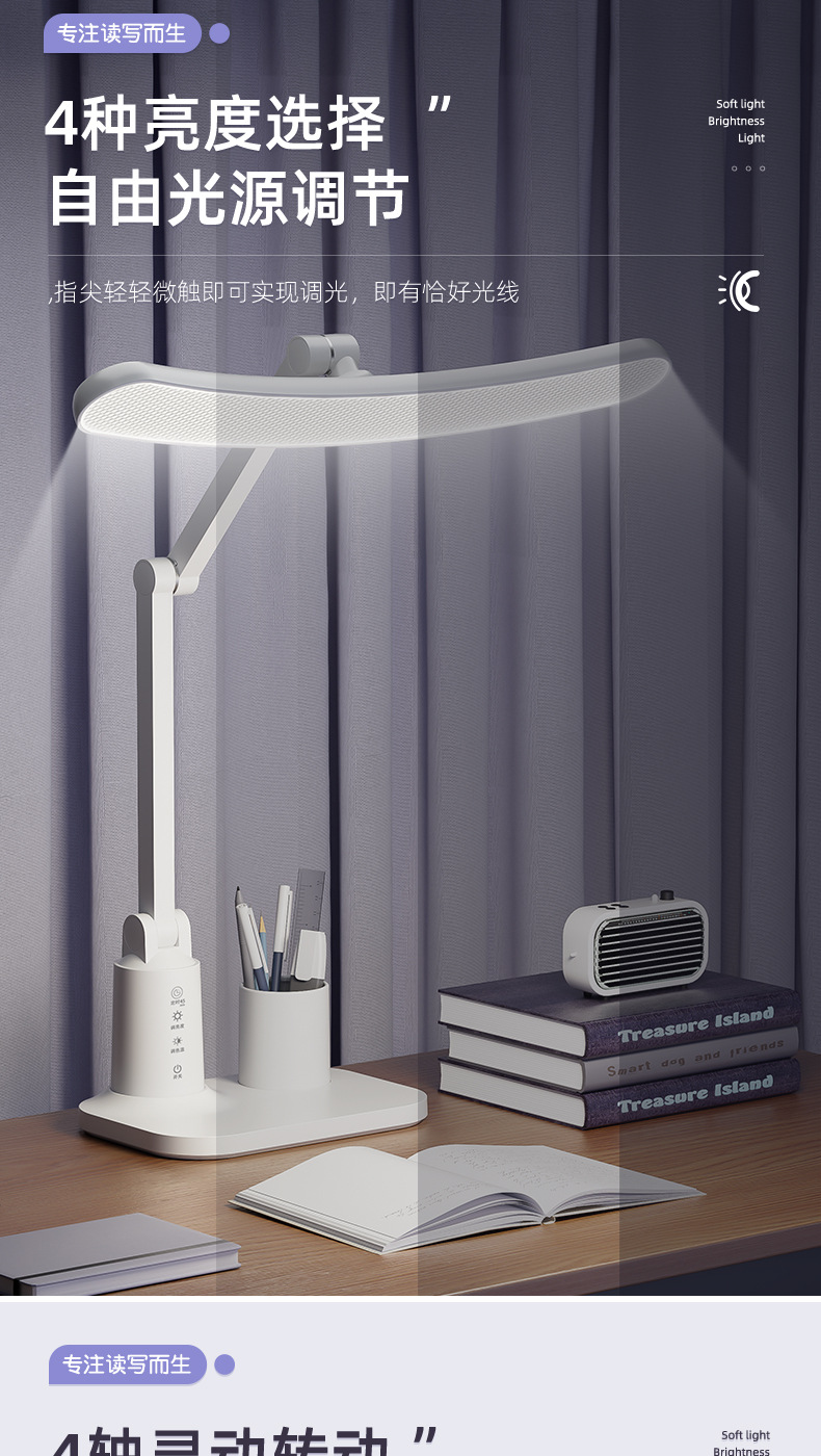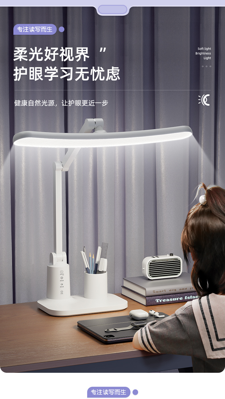 柔光护眼【全光谱led弧形台灯 】学生学习专用 宿舍折叠床头阅读充电定时小夜灯