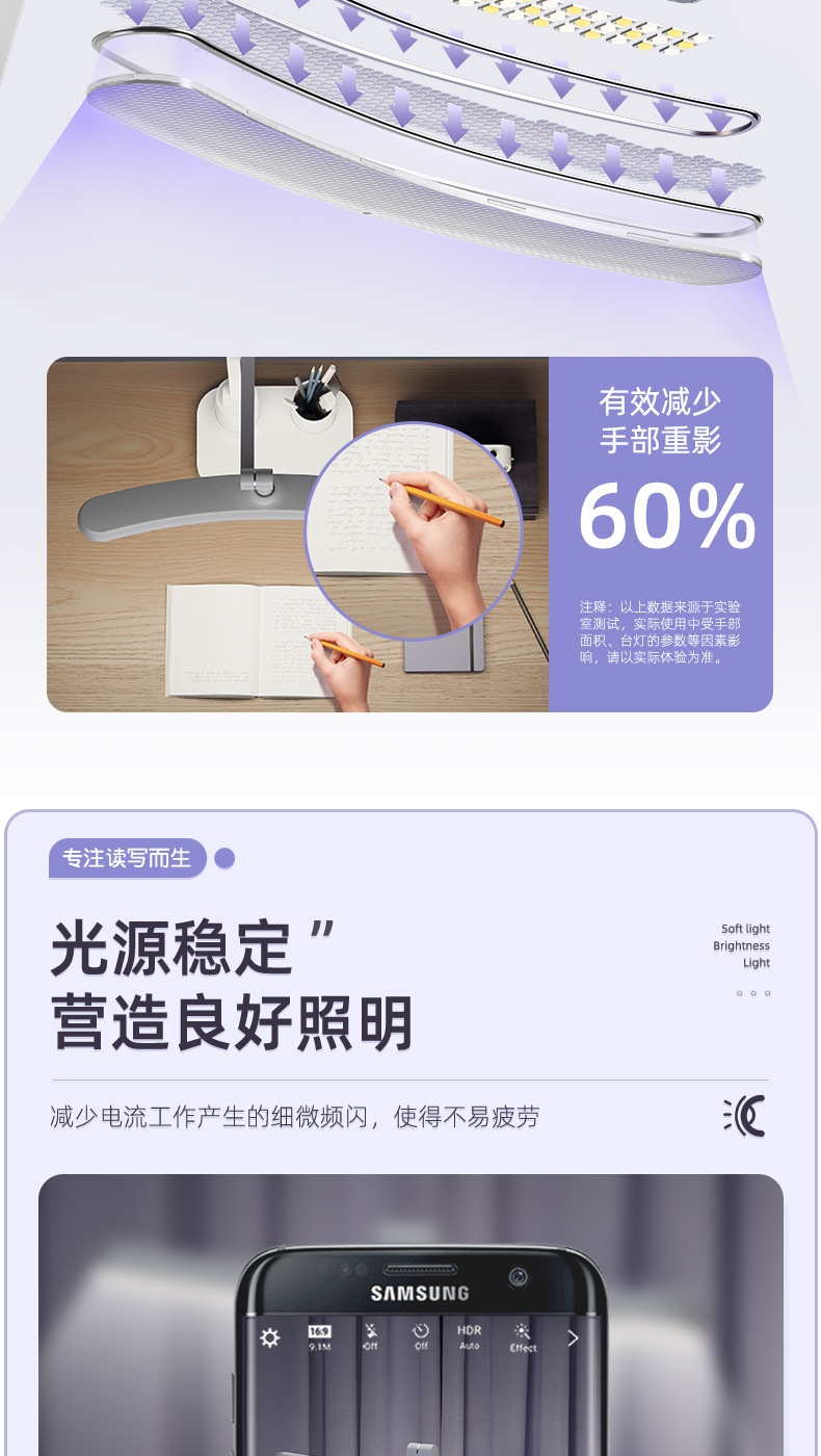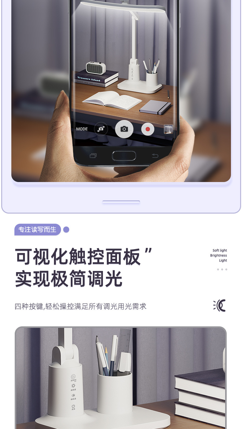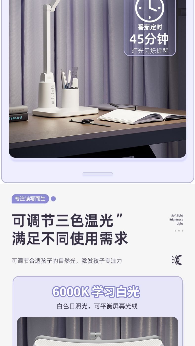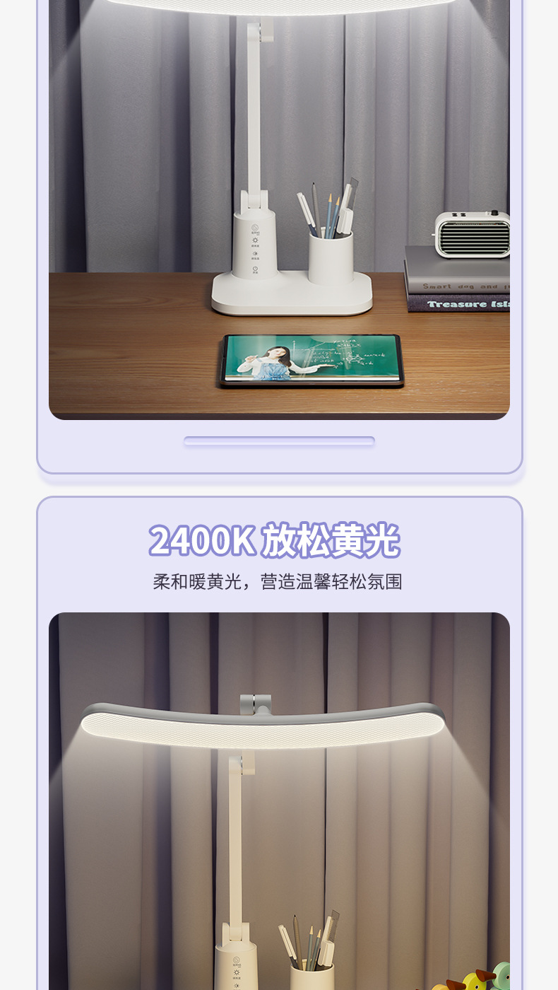 柔光护眼【全光谱led弧形台灯 】学生学习专用 宿舍折叠床头阅读充电定时小夜灯