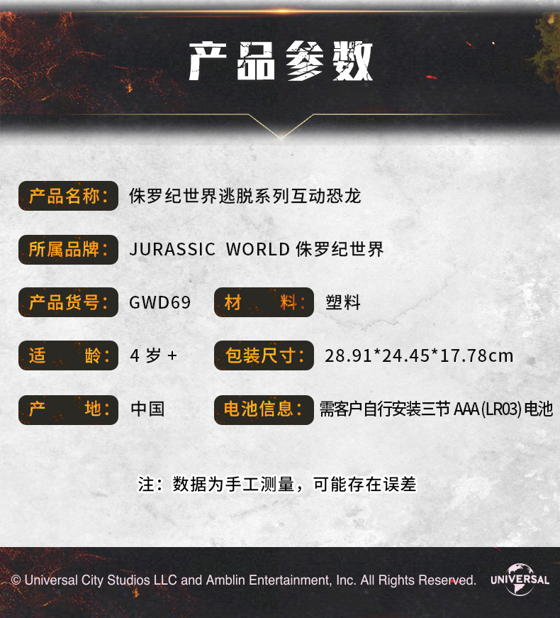 美泰 侏罗纪世界 GWD69 逃脱系列互动恐龙