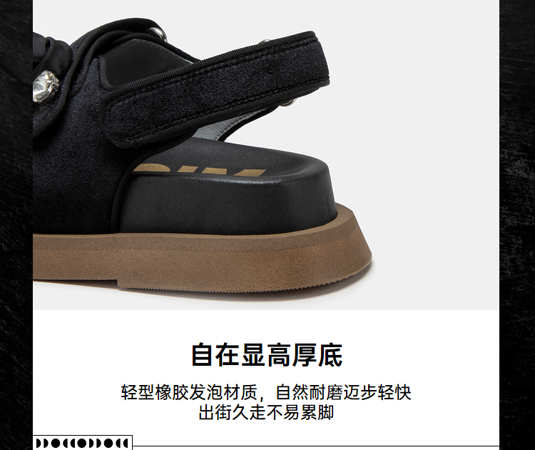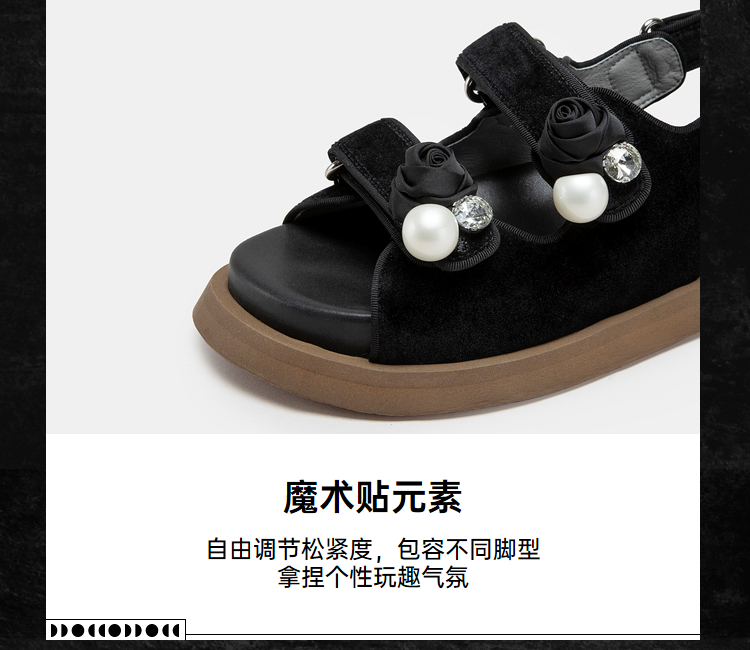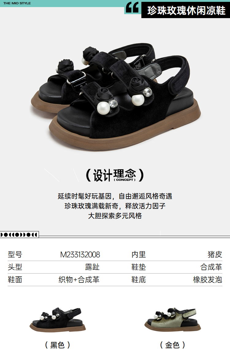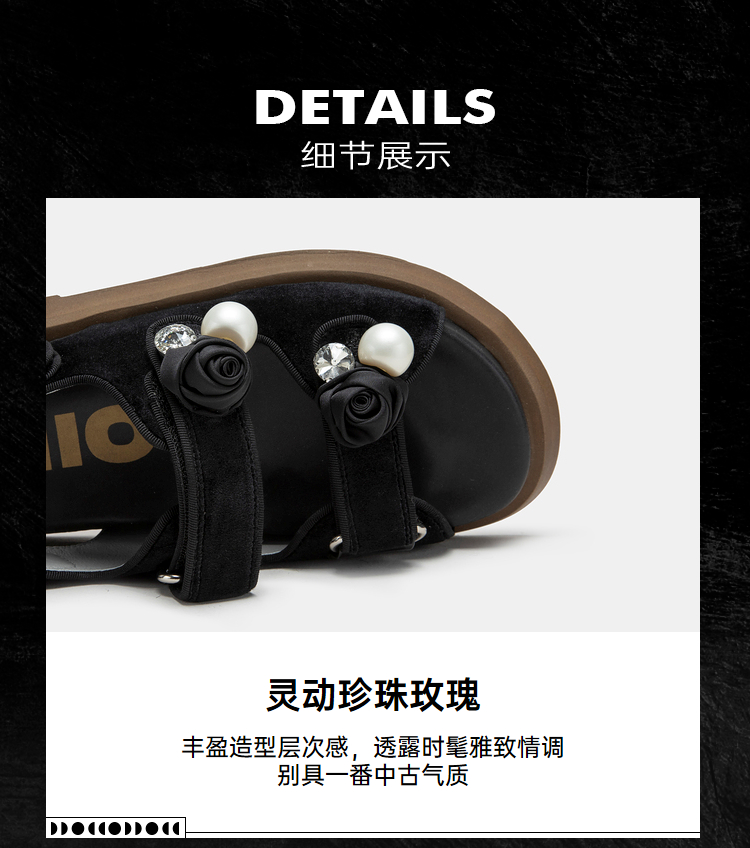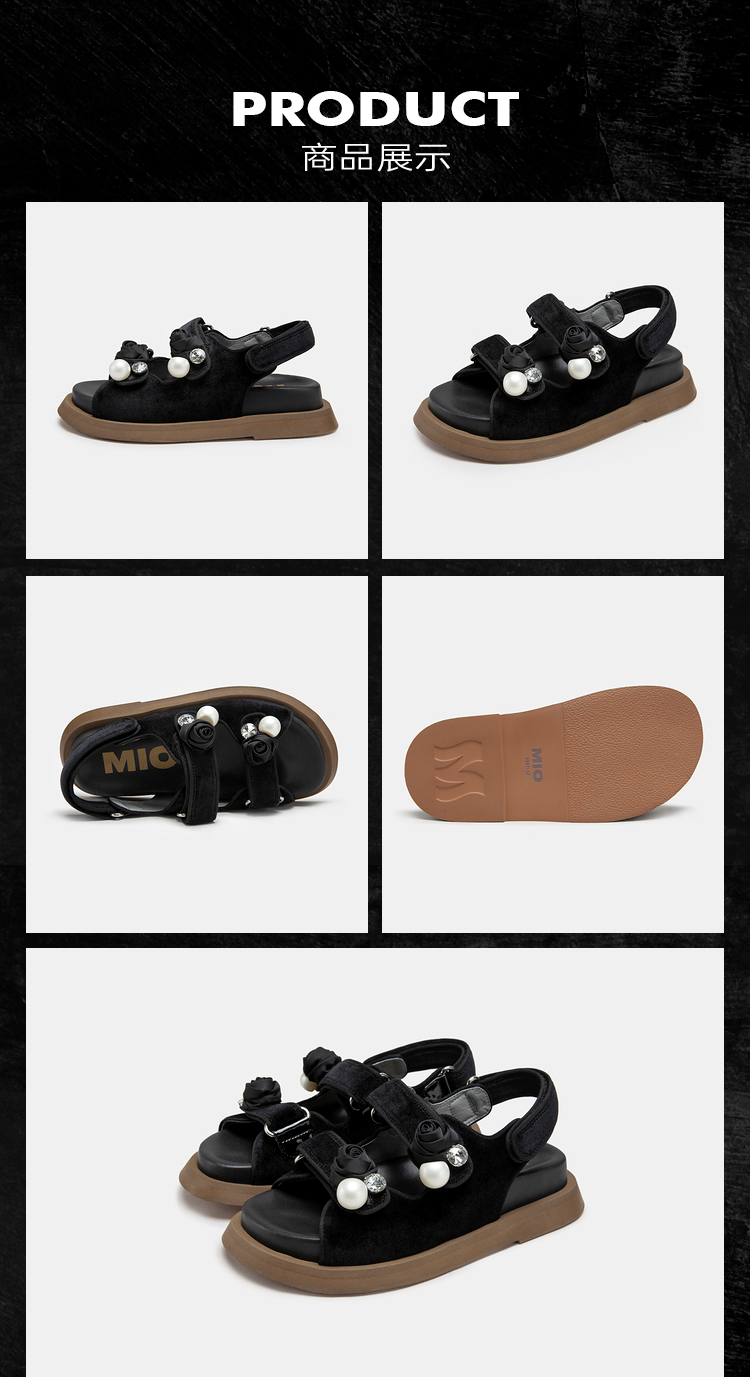 MIO米奥夏季显高厚底凉鞋闪钻珍珠玫瑰花个性时尚休闲沙滩鞋女鞋M233132008