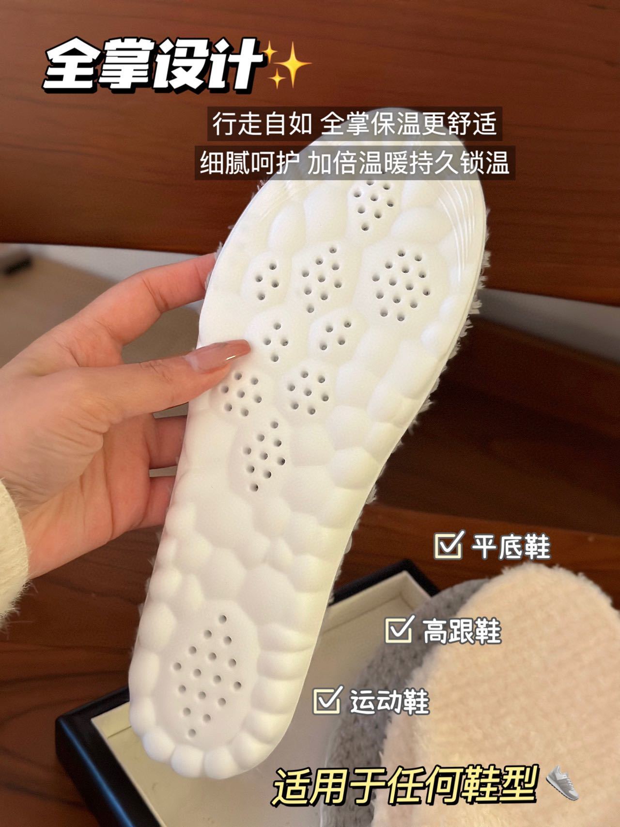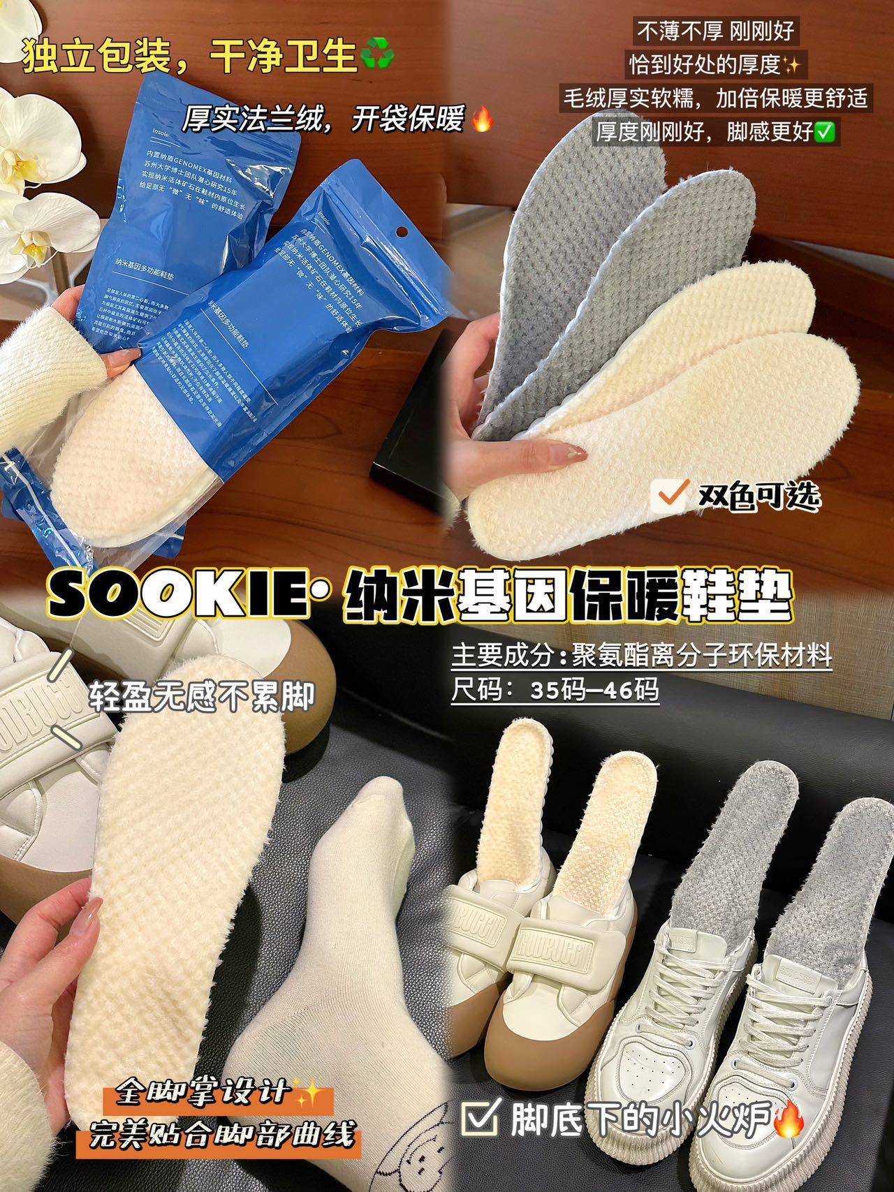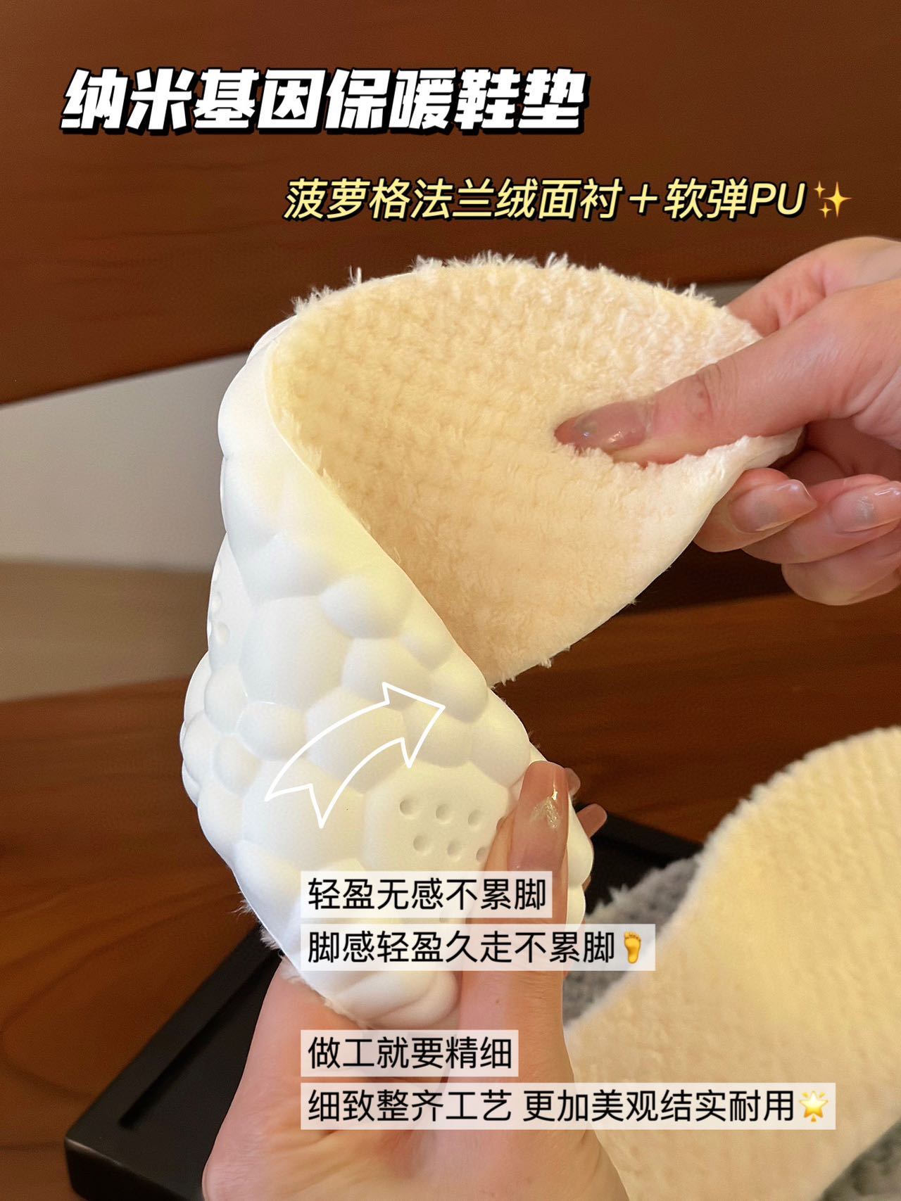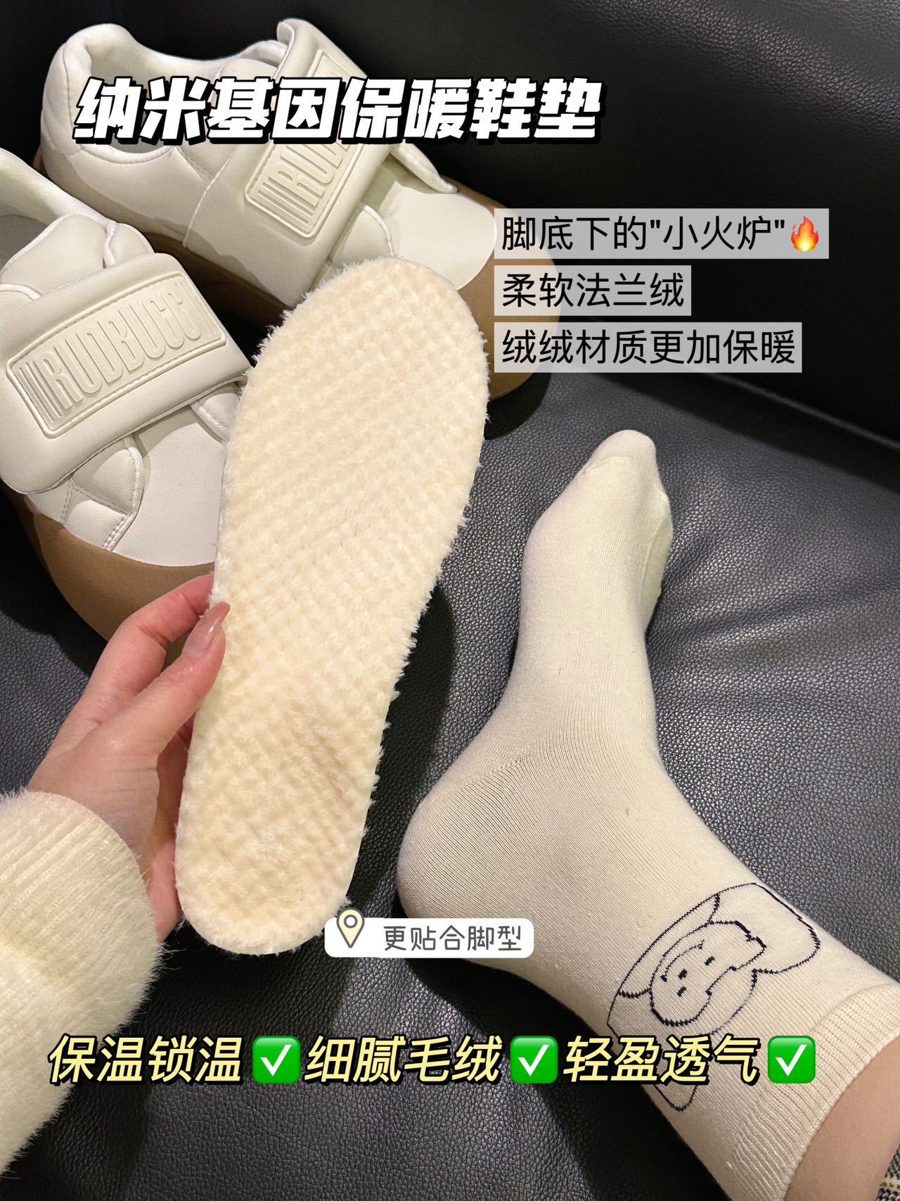 【纳米基因加厚法兰绒鞋垫】✅ 法兰绒材质+PU底,保暖性强,增高1.5cm ✅ 防压减震回弹,走路不累脚,运动不伤脚-HTGYL