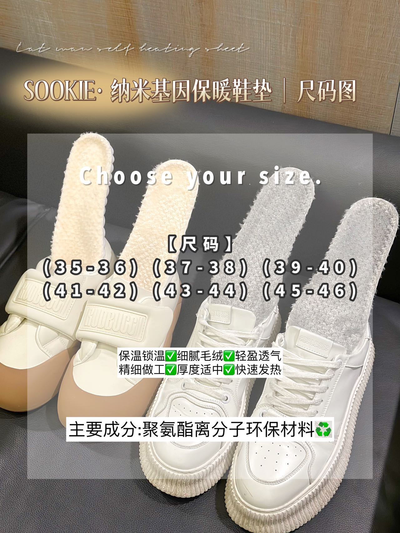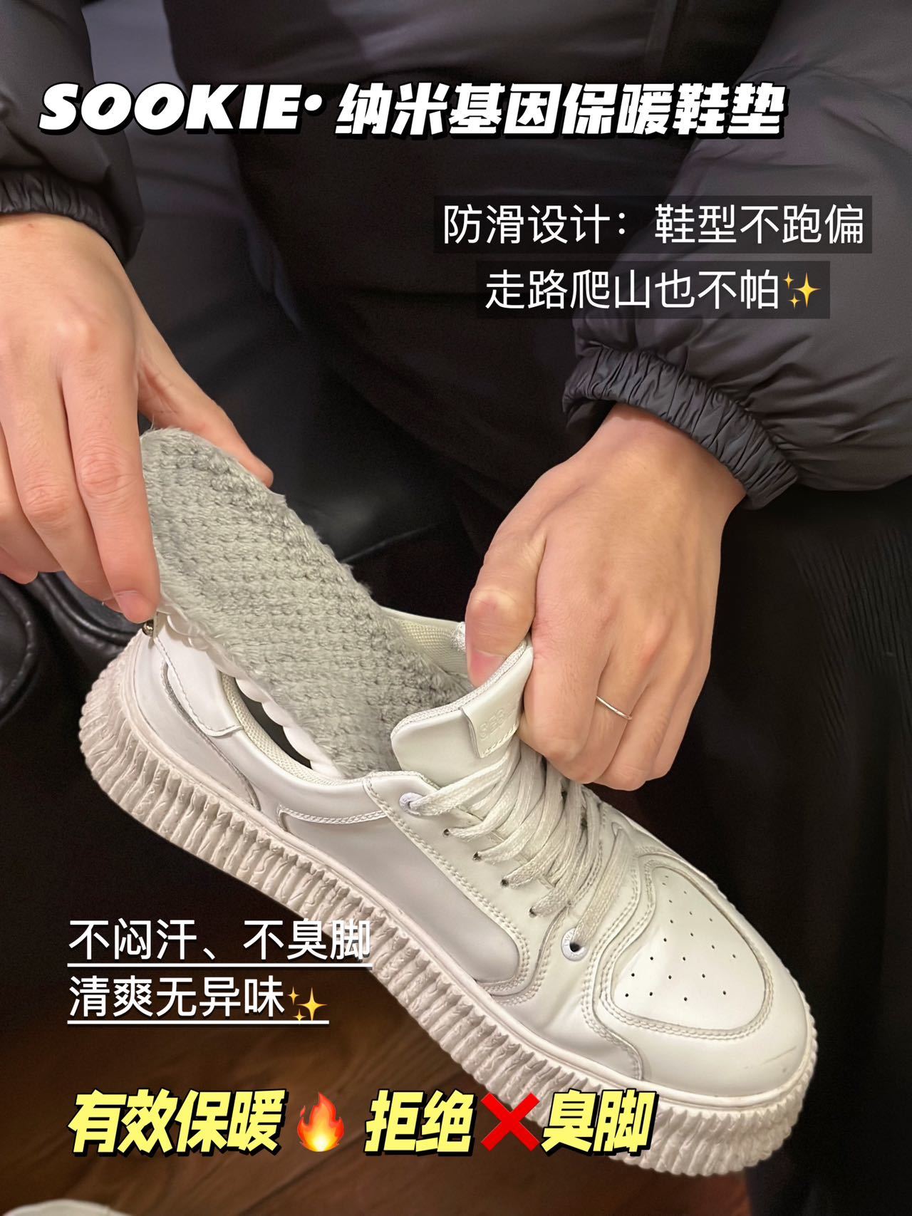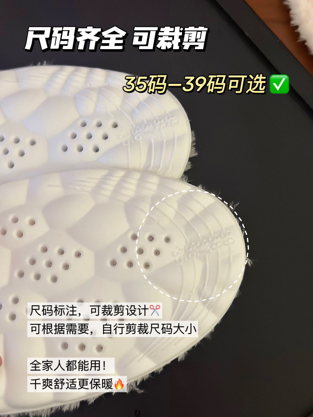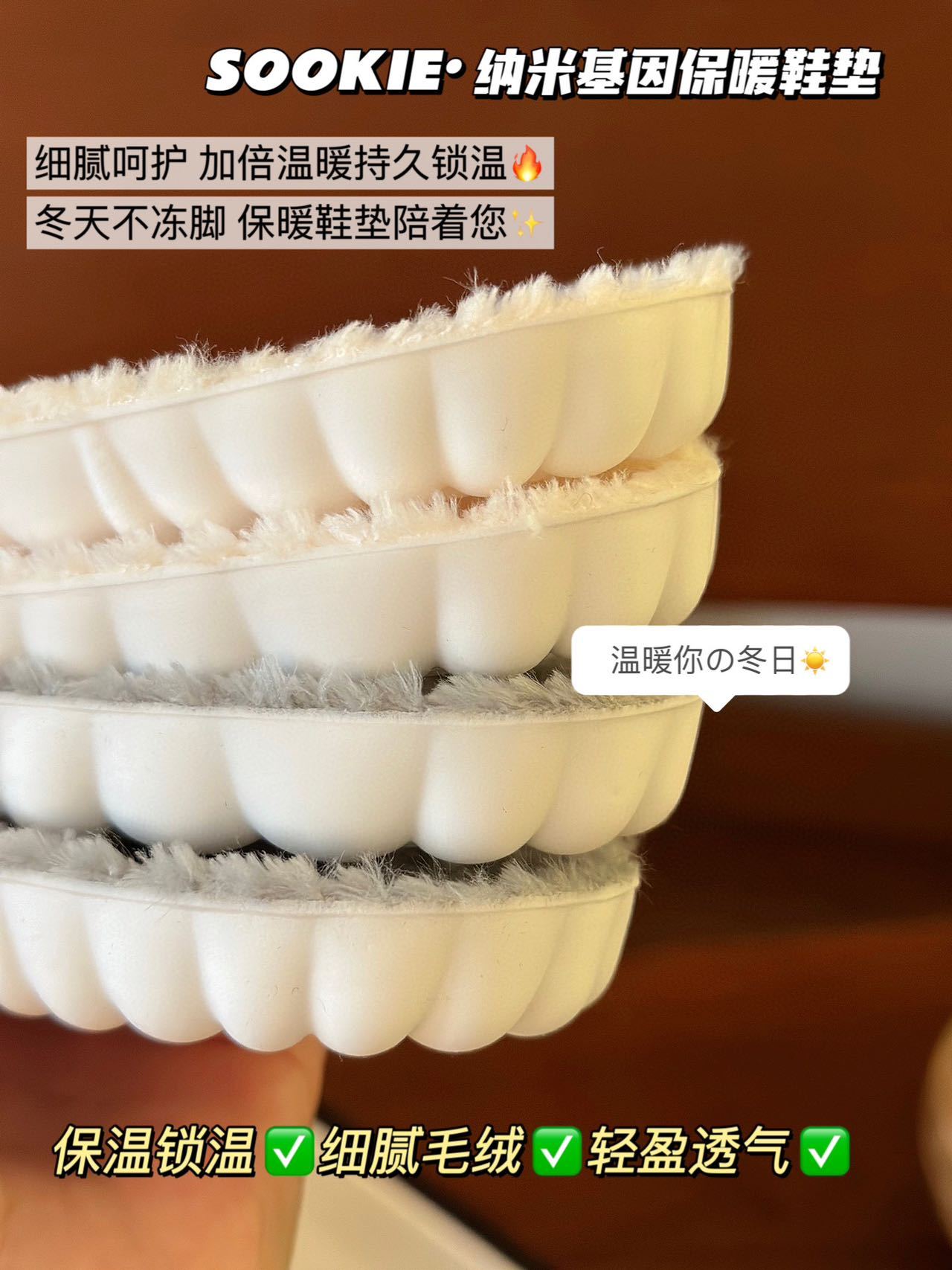 【纳米基因加厚法兰绒鞋垫】✅ 法兰绒材质+PU底,保暖性强,增高1.5cm ✅ 防压减震回弹,走路不累脚,运动不伤脚-HTGYL